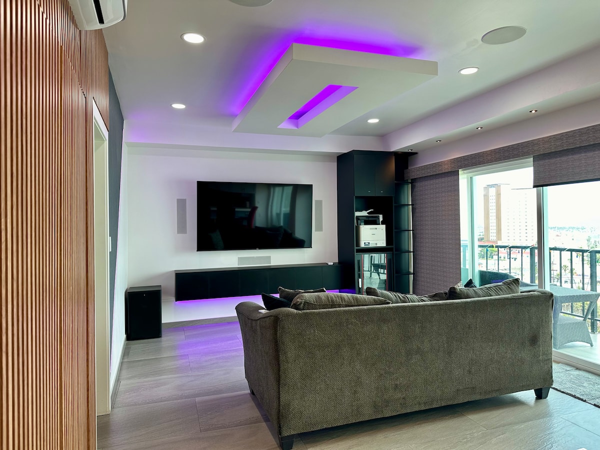 Private oceanfront luxury gated community with 3 pools, 8 jacuzzis, gym & spa. Condo includes 2 bedrooms, 1 bathtub, 2 bathrooms, living room, full kitchen, dinning room, washer & dryer. Smart TV's in every room and a dedicated workspace for home office. The oceanfront balcony with full 180 views from the 12th floor includes a Bluetooth speaker, lounge sofa, BBQ grill and a bar for the perfect happy hour sunset. Portable ice chest, chairs & towels for beach goers are included. Just relax!!