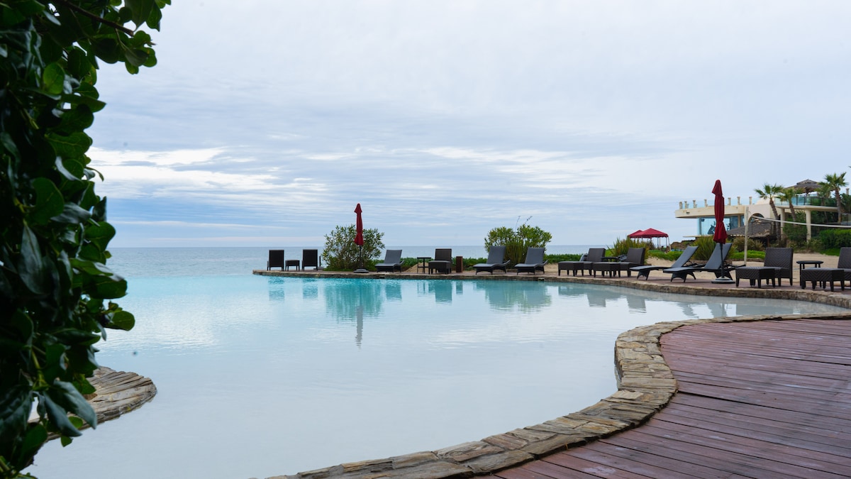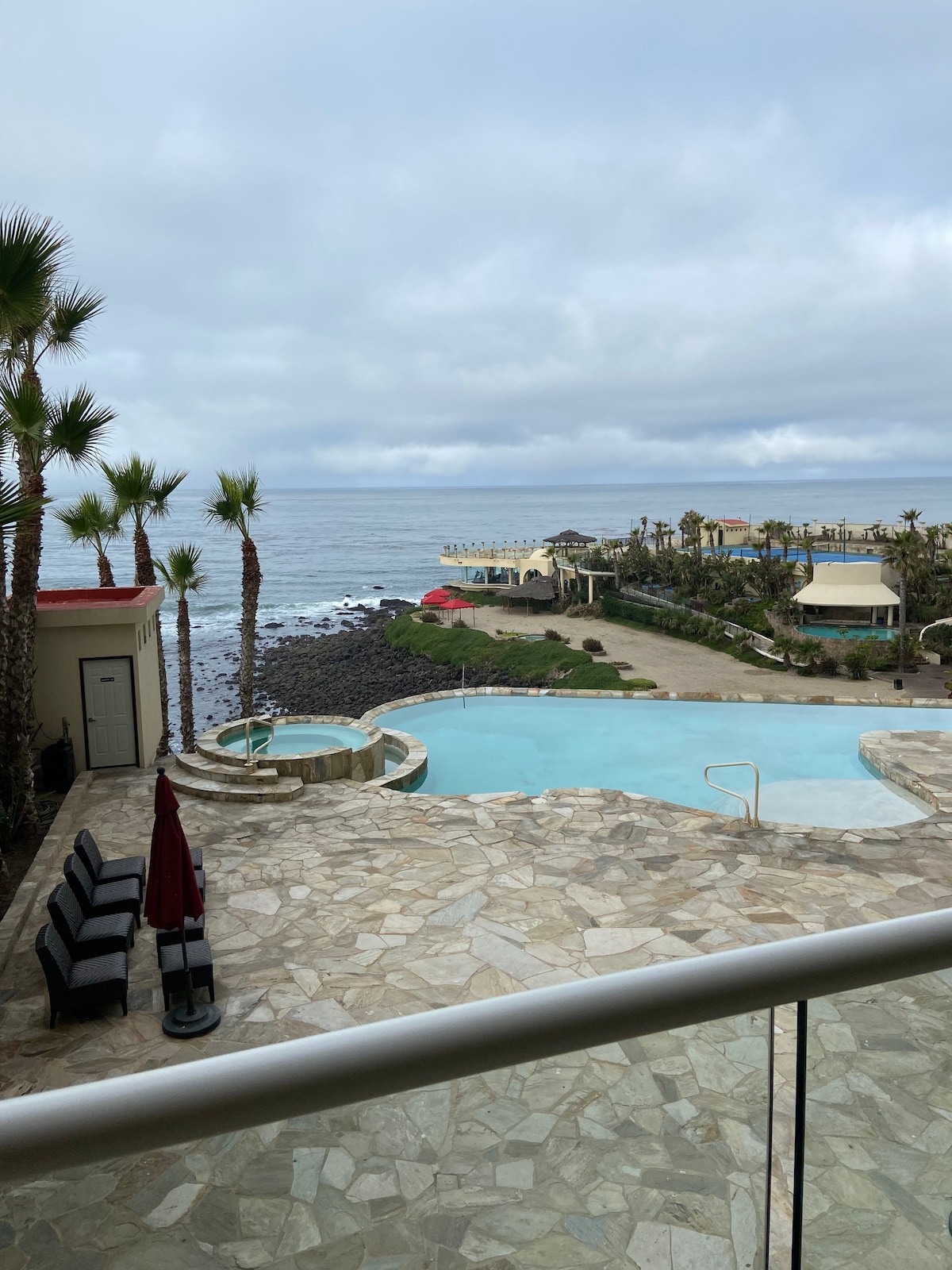 Freshly remodeled & decorated oceanfront condo in Rosarito/Calafia, with EXCLUSIVE (1 of 5) walk-out access to terrace level heated pool. Unreal view! Please review "Other Details to Note" section before booking to ensure our home aligns with your needs & expectations. The third level pool is strictly off limits to all guests under age 18. No pets. Onsite amenities include - Multiple pools and Jacuzzis (some with private cabanas) - Tennis Court - Sand volleyball court + So much more….