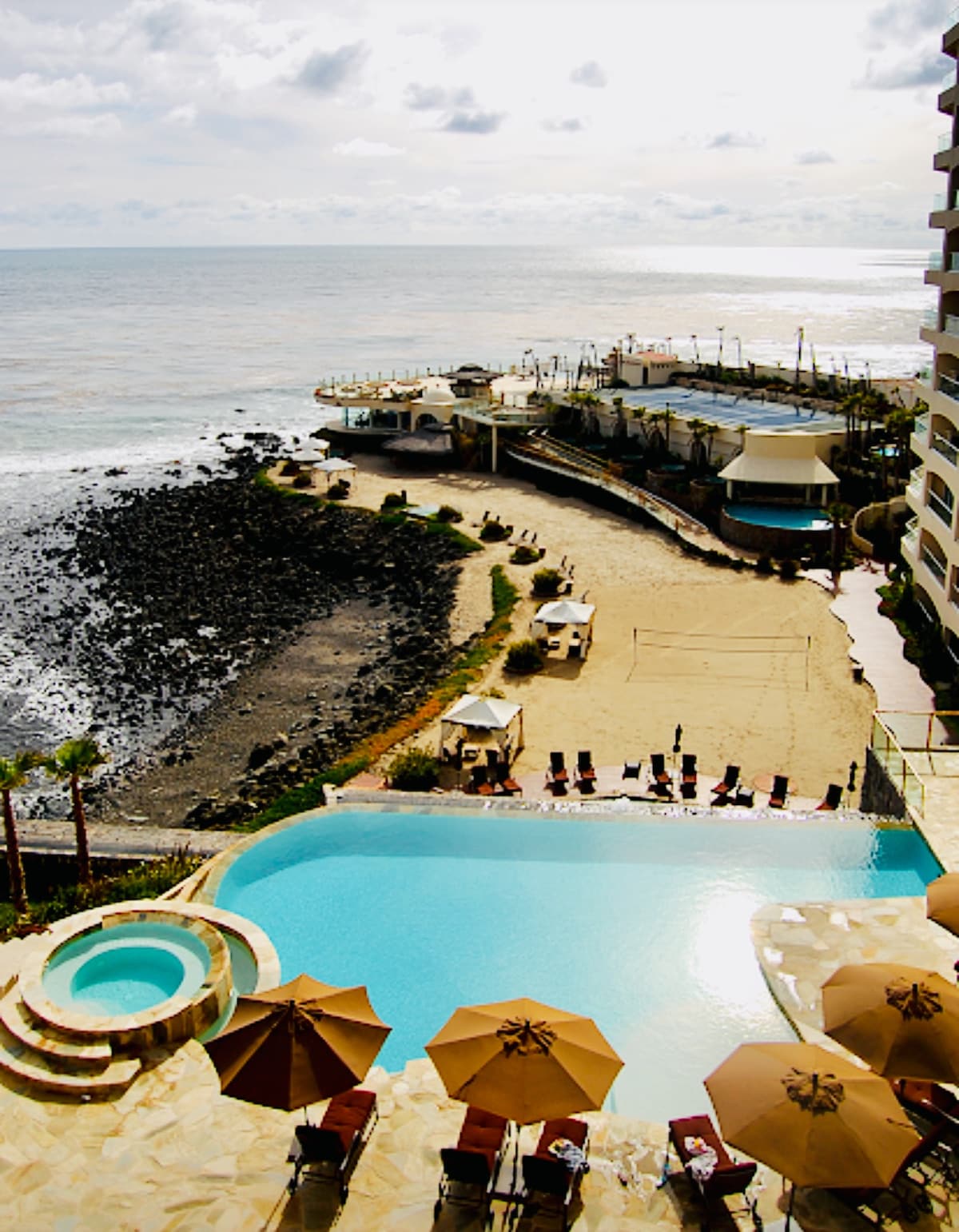 Discover the ultimate oceanfront retreat at Las Olas Grand. Just 45 minutes south of Border and 10 minutes from downtown Rosarito, our exclusive complex offers relaxation and adventure. Let the soothing sound of the waves and breathtaking ocean views transport you to serenity, as you watch dolphins glide by on their daily swim. Unwind in our ocean-view pools, jacuzzis, and scenic terraces, the ideal setting to create unforgettable moments with family and friends. Your coastal escape awaits! 🌊✨