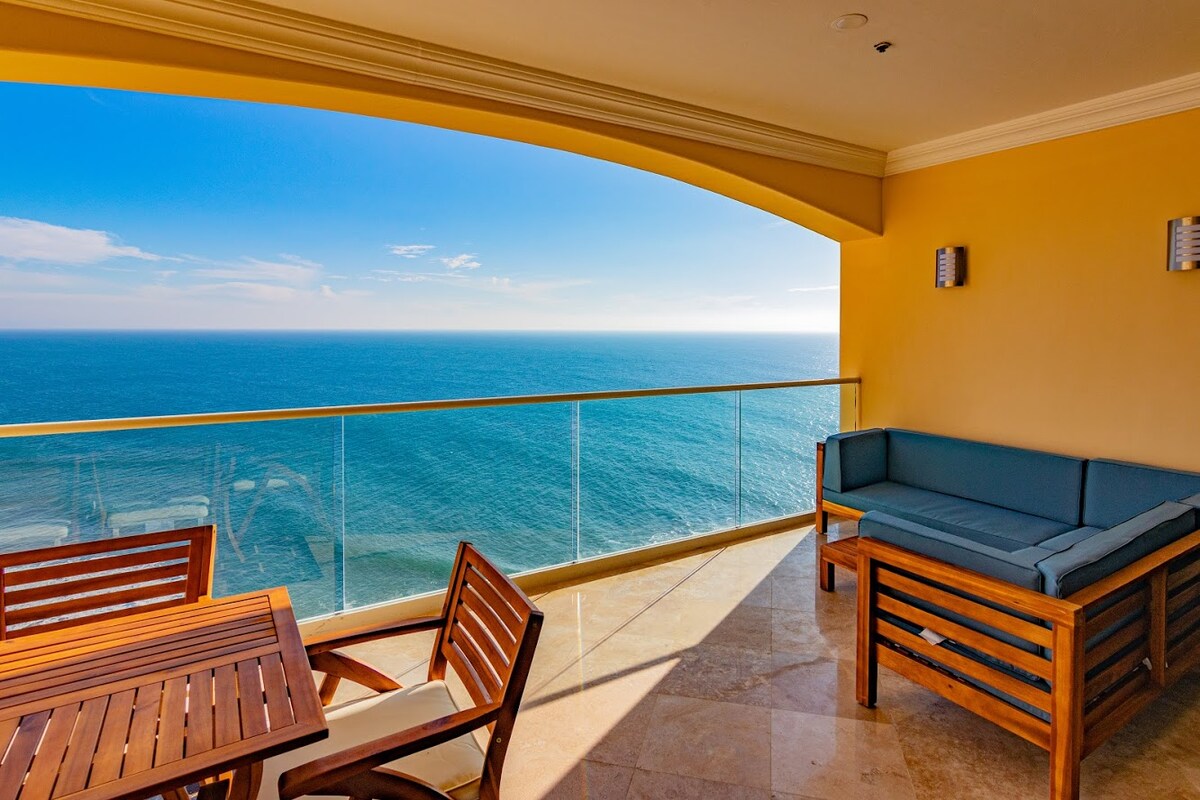 Please note: not suitable for children. No pets due to severe allergies. Private oceanfront jacuzzi on your balcony in Rosarito. Floor-to-ceiling ocean views make you feel like you’re floating above the water. Open-concept space with a warm, elegant feel. Large curved balcony offers exceptional privacy—perfect for sunsets and relaxing in the jacuzzi. Watch dolphins in the morning and whales in season. Electric blinds, ceiling fans, and new outdoor furniture .