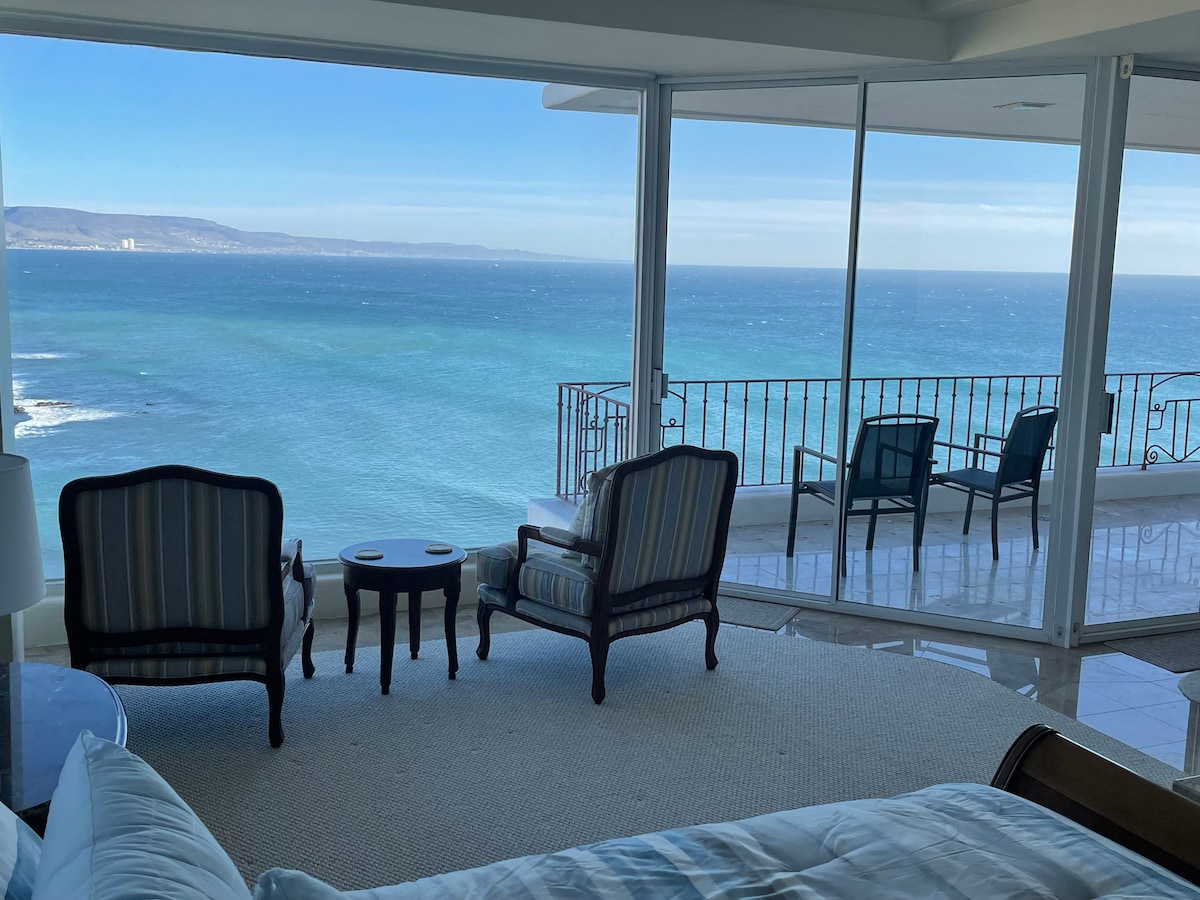 Welcome to our luxury condo beachfront with spectacular views and amazing sunsets that will take your breath away. It is located in all the points of interest and touristic spots of Rosarito. 10 min to Papa’s and Beer 💃🏼 Close to shopping centers, restaurants, bars and night life! Just 7 minutes to Downtown Rosarito. 20 minutes to Puerto Nuevo and 45 min to Valle de Guadalupe.