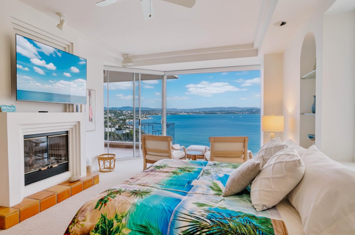 Please note: not suitable for children. No pets due to severe allergies. Private oceanfront jacuzzi on your balcony in Rosarito. Floor-to-ceiling ocean views make you feel like you’re floating above the water. Open-concept space with a warm, elegant feel. Large curved balcony offers exceptional privacy—perfect for sunsets and relaxing in the jacuzzi. Watch dolphins in the morning and whales in season. Electric blinds, ceiling fans, and new outdoor furniture .