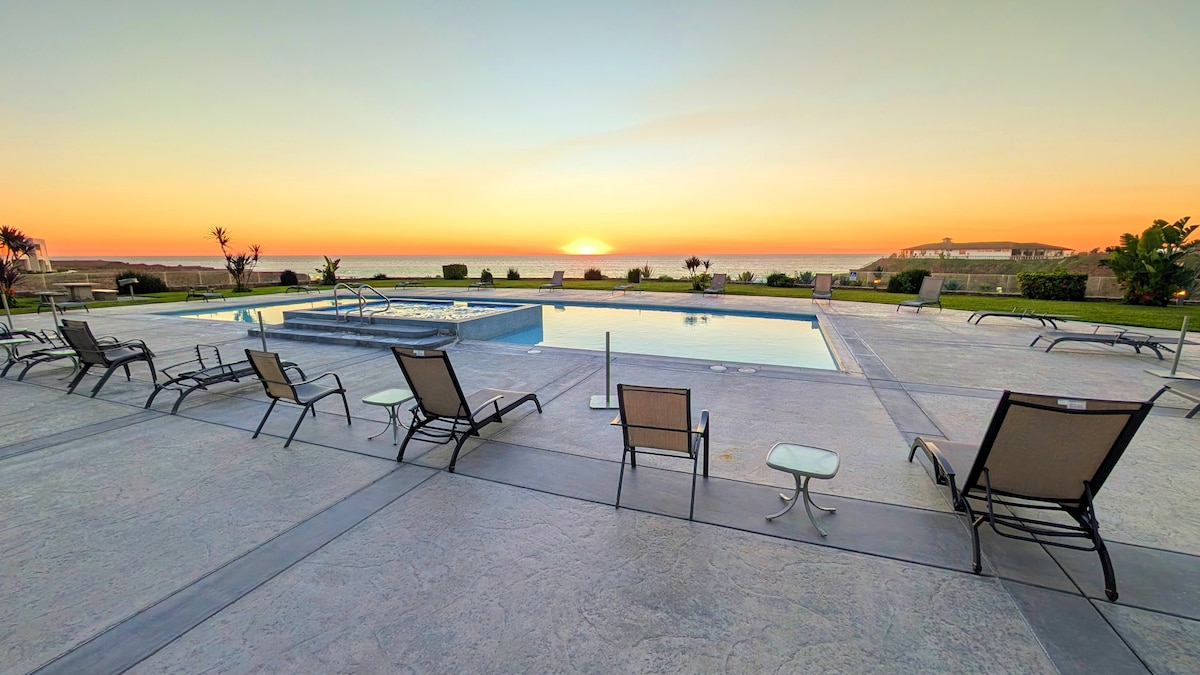 Freshly remodeled & decorated oceanfront condo in Rosarito/Calafia, with EXCLUSIVE (1 of 5) walk-out access to terrace level heated pool. Unreal view! Please review "Other Details to Note" section before booking to ensure our home aligns with your needs & expectations. The third level pool is strictly off limits to all guests under age 18. No pets. Onsite amenities include - Multiple pools and Jacuzzis (some with private cabanas) - Tennis Court - Sand volleyball court + So much more….
