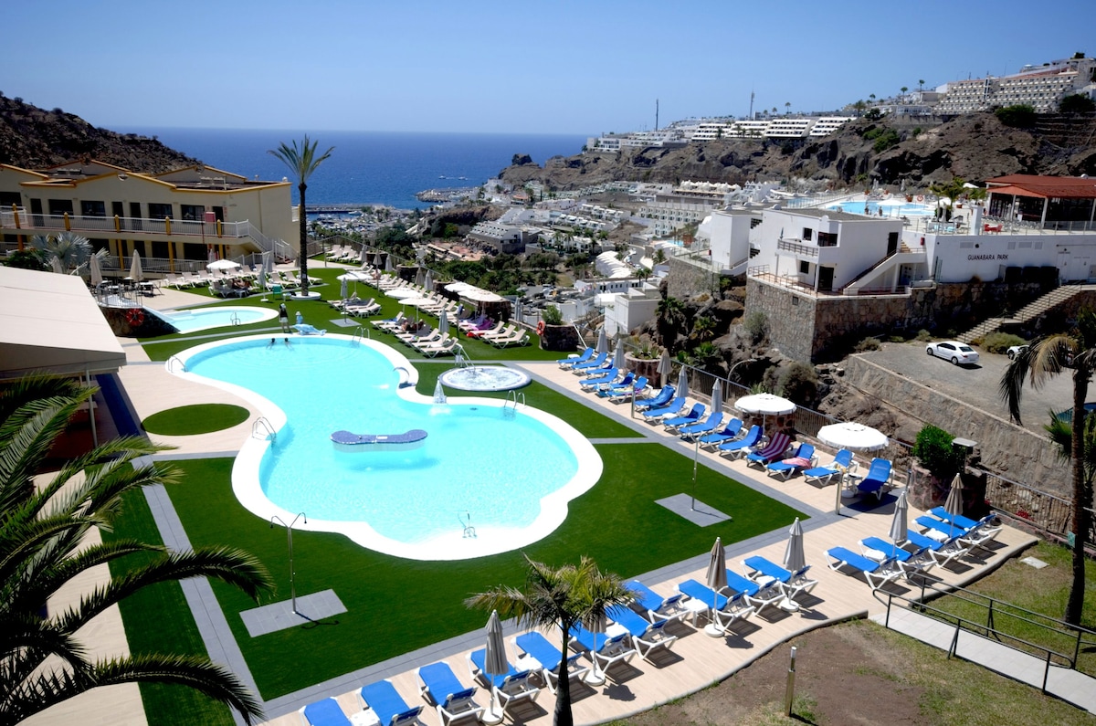Located in a privileged spot in Puerto Rico, Gran Canaria, Natural Park offer an unforgettable holiday experience. This peaceful, family-friendly complex combines relaxation, comfort, and nature. Enjoy spacious terraces with ocean views, unwind by one of our two outdoor pools, or savor delicious cuisine at our on-site restaurant. With 24-hour reception, a bar, games area, massage services, and entertainment options, everything you need for a perfect stay is right here.