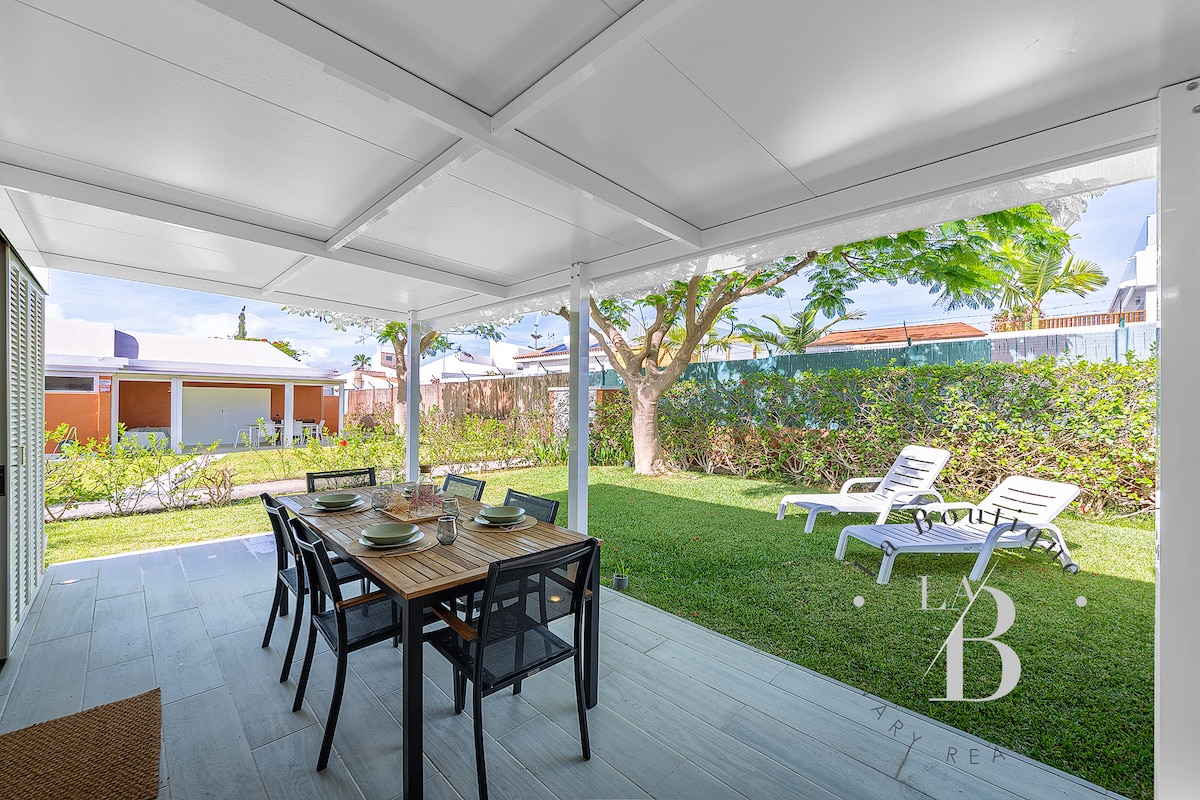 The perfect place for your vacation: a bungalow with two bedrooms, two bathrooms, a living-dining room, and a fully equipped kitchen. Decorated in a contemporary style, it offers comfort and privacy. It features hammocks, a cozy porch, and a private garden with natural grass, perfect for enjoying the island's climate. It also features a stunning pool, ideal for relaxing and feeling at home.