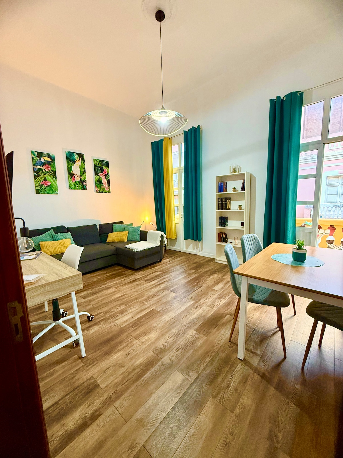 Modern and very bright studio, totally renovated, located in a strategic location, in the historic center of Las Palmas de Gran Canaria, Vegueta. 100 meters from Cathedral, Vegueta Market and the famous Mayor Triana Street. Top quality comfortable bed ( 1'50m). High speed WIFI and TV.