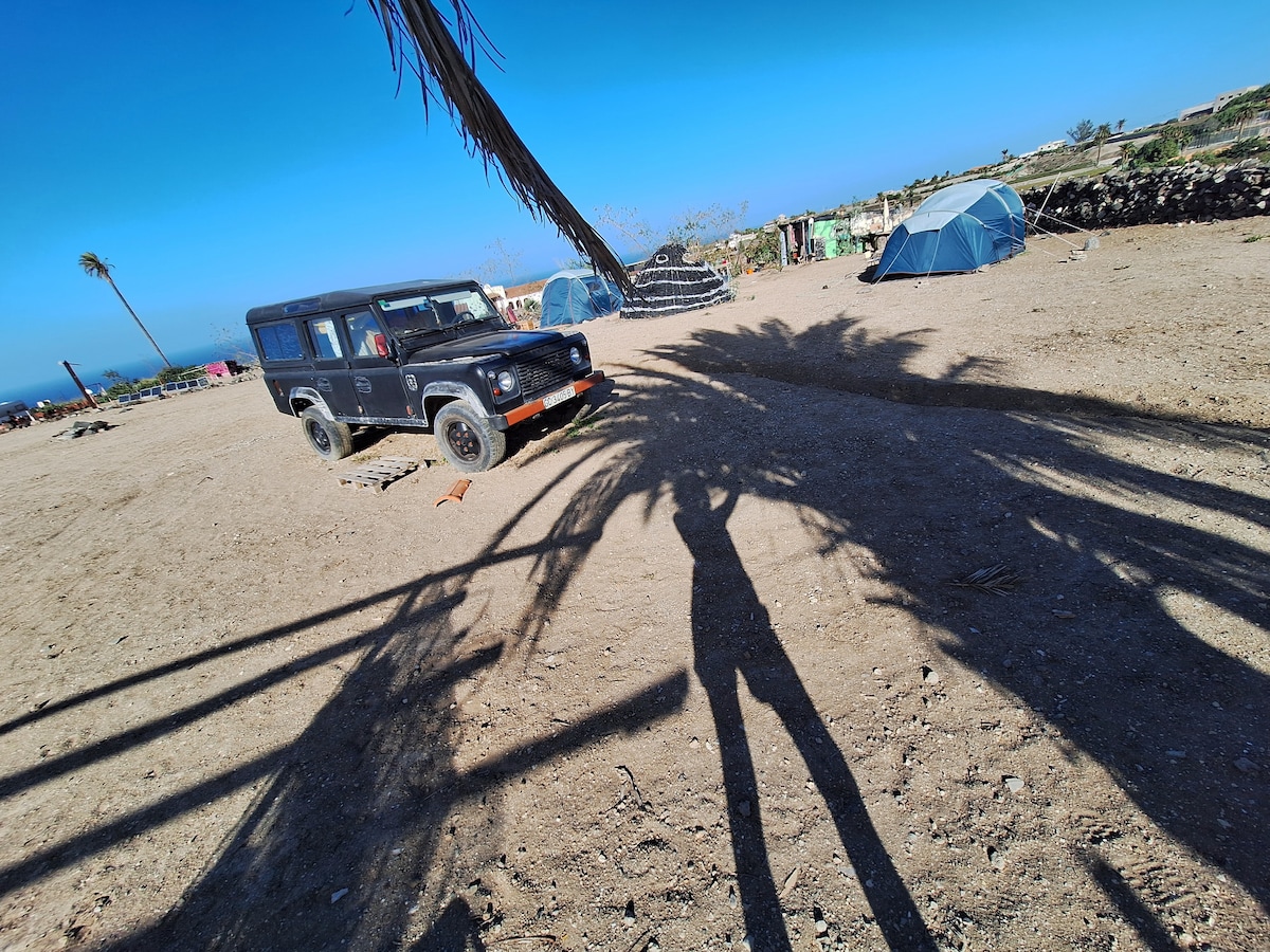 Dears, we are offering Land Rover Defender as a special place to stay, with double bed inside, with a view towards the ocean and 2nd highest palm tree on Canary Islands. The land is 8.000m2, with some art and horses. The property is positioned over the Barranco de Guancha only 25 minutes rural walk to the beach San Andres. Famous Barranco de Azuaje is "stone throw" from our place as well. You will share kitchen, shower and toilet with guests.