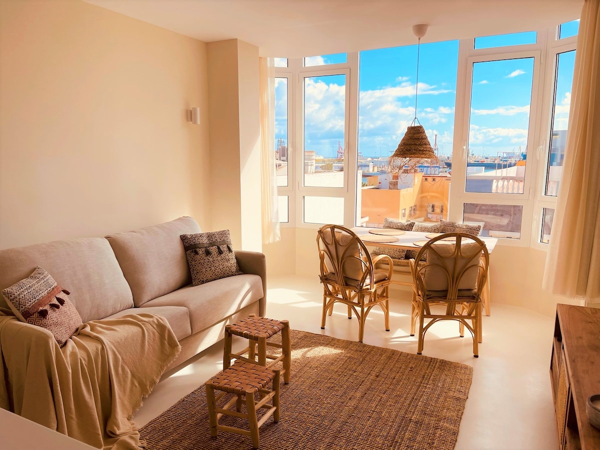Magnífico apartamento reformado en primera línea de la Playa de las Canteras. Está tan cerca del mar que cuando sube la marea da la sensación de estar en un barco. Por las noches se escucha el romper de las olas e incluso desde el fondo del apartamento. En relación al wifi, esta disponible, pero a veces pierde la señal, por lo que no se garantiza su funcionamiento continuo.