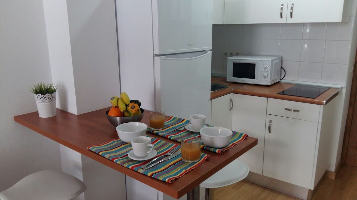 Nice apartment, very well equiped, full of light, of about 50 square meters and consisting of 1 bedroom, bathroom and living room open to the kitchen. It is located in a pedestrian street (fourth floor with lift) only a few meters from the beach and in the best area of the capital of Gran Canaria to enjoy the city. You can use everything in the house- usually we'll leave some water, olive oil, spices, salt, coffee, and all the basics. We offer you lots of towells and beautiful linen.