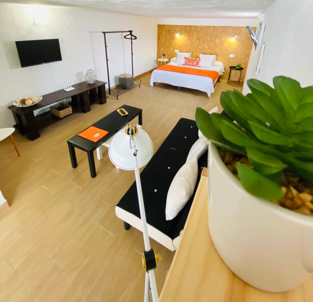 Apartamento construido en el 2016 es un estudio abierto de 36 metros cuadrados con cocina baño . zonas comunes para el relax y deportes. para parejas, aventureros, y viajeros de negocios y deportistas. Una terraza privada de 30 m2 en la cual puedes disfrutar el maravilloso clima de Lanzarote.