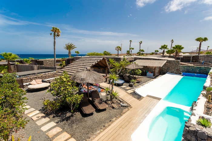 Experience glamping in style! Luxurious 8 metre Super Yurt, at beach location, with 2 curtained sleeping areas, ideal for a family/couple looking for extra space. Perfect fully equipped holiday home with stunning sea views, large terrace and garden. Perfect for a family holiday. Off-grid Finca de Arrieta facilities include a solar-heated pool, eggs from the hen house, free wifi, playground, honesty shop. Just 300mt walk to beach & restaurant.