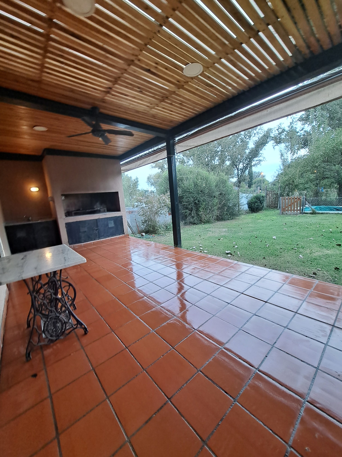 2 calefactores, 2 a/c frío calor, smart tv cable de 55" en dormitorio principal, microondas, cocina con horno, heladera con Freezer, patio trasero con fogón parrillero, mesada, bacha agua fría y caliente, mechero y disco. Alarma, ropa de cama, lavarropas, 2 baños, calentador de toallas, cochera con portón corredizo, otra cochera adicional. Atención 24hs. Estadía y relax en familia en este tranquilo alojamiento a 100 metros de ruta nacional 9