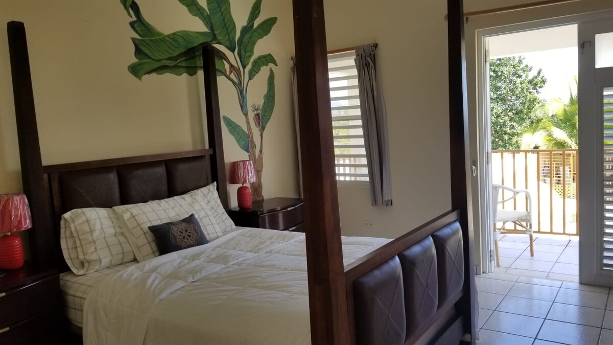 This private room has it's own entrance, within the most prestigious gated community in Palmas Del Mar - The Marbella Club. Here you can find 2 oceanfront pools, a hot tub, and 24 hour security. With the ocean only steps away, this is the perfect place to come enjoy the warm waters of Puerto Rico! This room includes 1 King bed, (new) wifi, a full bathroom, microwave, mini fridge (with freezer,) and coffee pot. Perfect for a solo trip, couple's getaway, or a couple with a small child/baby.