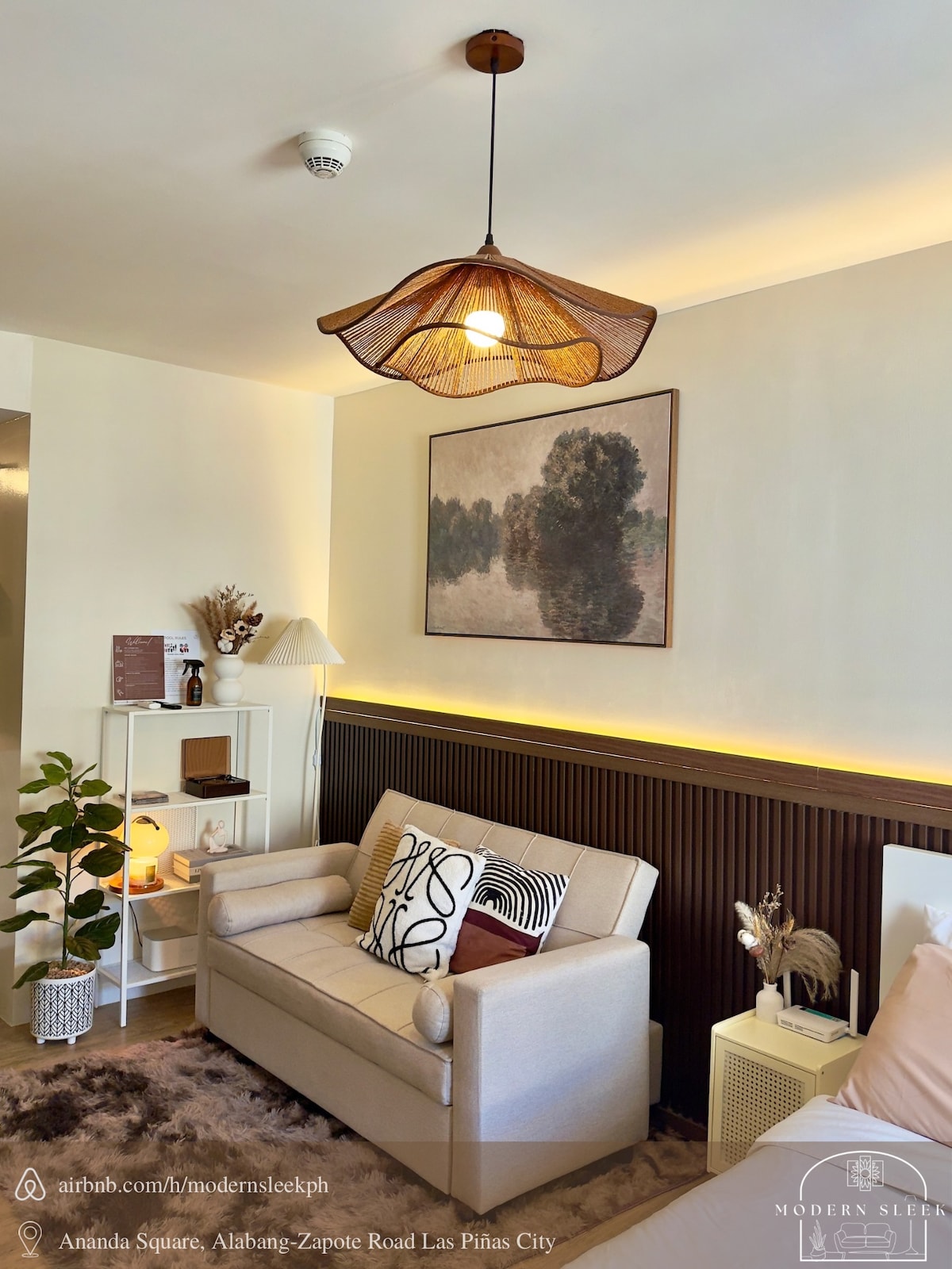 A thoughtfully designed with a calm, minimalist palette of white, wood, & black, this space invites you to slow down and enjoy life’s simple comforts. Whether you’re here for work, a weekend escape, or a longer stay, this retreat offers the perfect balance of comfort and design. 🌿 Ideal for solo travelers, couples, family, & remote workers looking for a quiet, beautiful space to recharge. 📍Located at Sonora Garden Residences, Las Pinas City — adjacent to Robinsons Mall, cafes, church schools