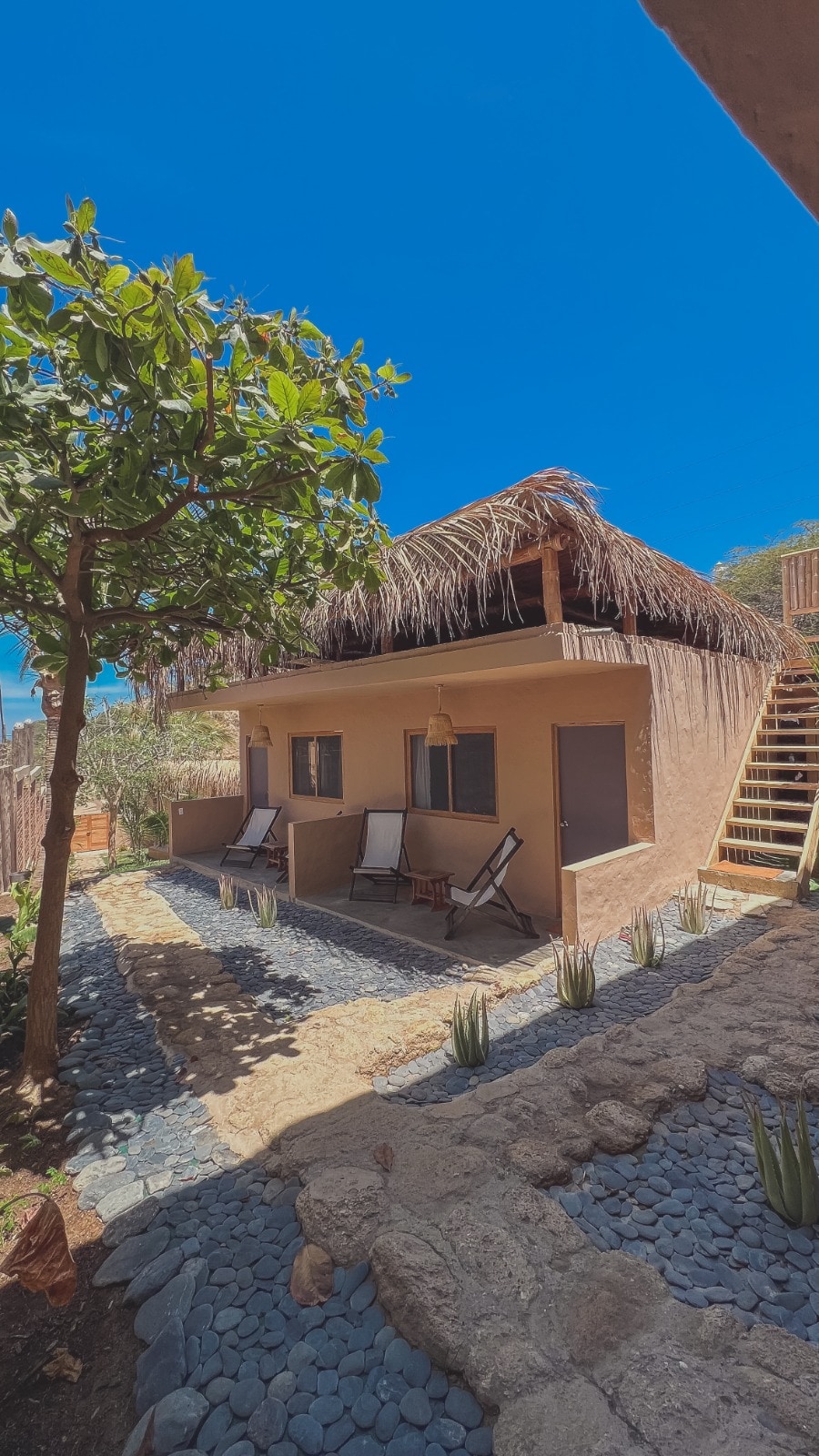 La Casa del Ñuro es un hospedaje en la playa, con dos bungalows situado en la reserva natural El Ñuro, playa privada. Desde la terraza se ven los cerros y la preciosa bahia,disfrutar del avistamiento de ballenas y nado con tortugas. Aqui te relajas, tomas sol y se puede ver el paso de las ballenas y las aves migratorias.Desde tu bungalow tienes salida a la playa. Un lugar unico para personas que buscan inspiración, tranquilidad, naturaleza. Tenemos una camita extra por bungalow para un hijo.