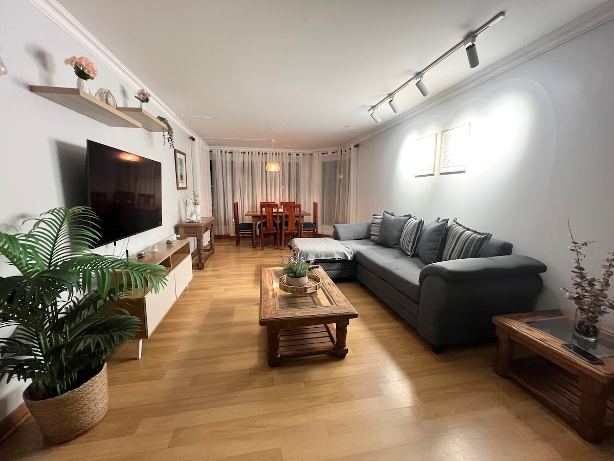 Departamento romántico, barrio tranquilo, ideal para pareja. Excelente vista al mar. Muy central, a pie se llega a los 4 Mall, restaurantes, supermercados y playa. Cocina americana con encimera, totalmente equipada. Living con Smart TV y Netflix. Se otorga sábanas, frazadas, plumón, toallas y secador de pelo. Estacionamiento techado dentro del edificio y con acceso con control remoto. No mascotas. Solo adultos, sin niños ni bebes.