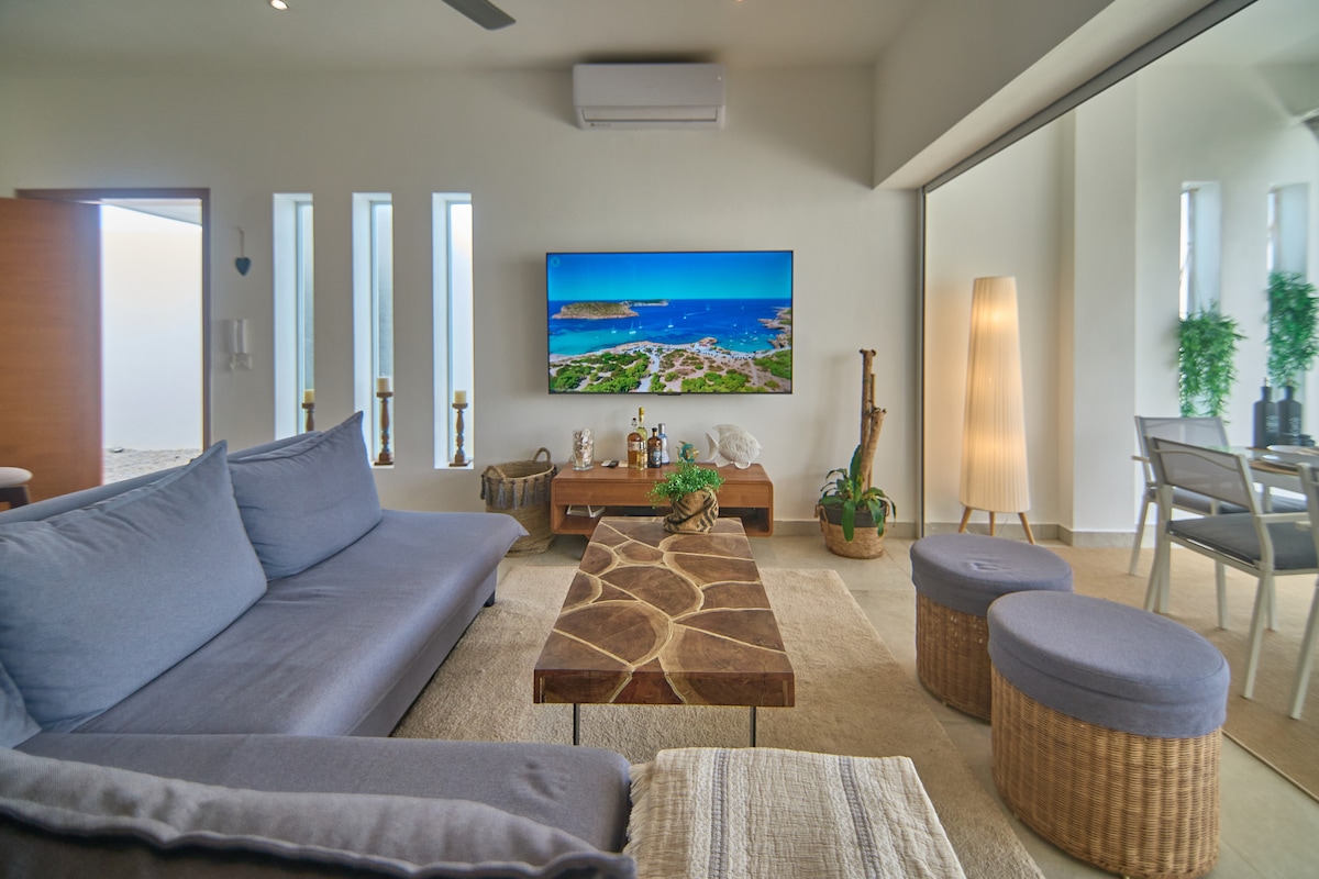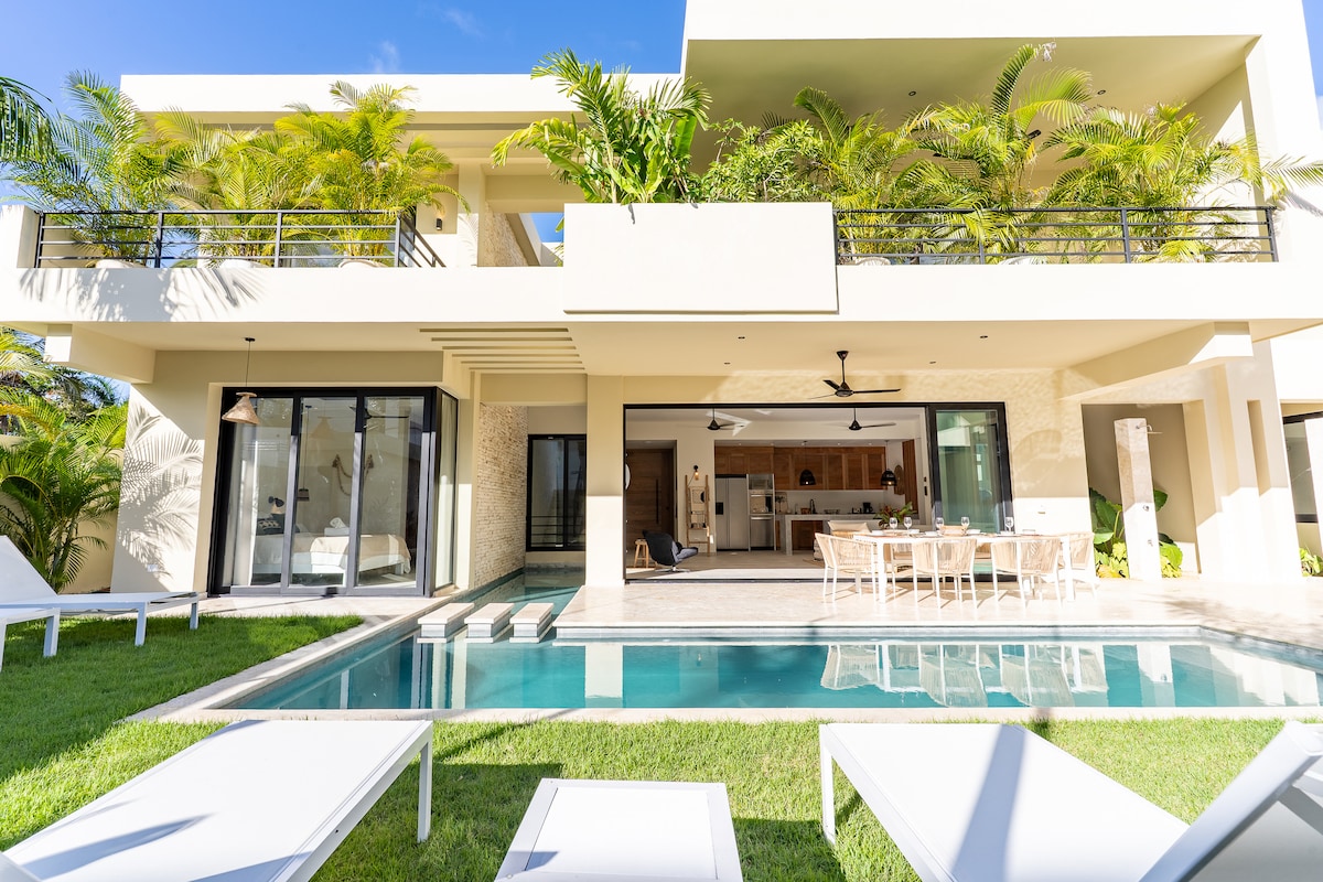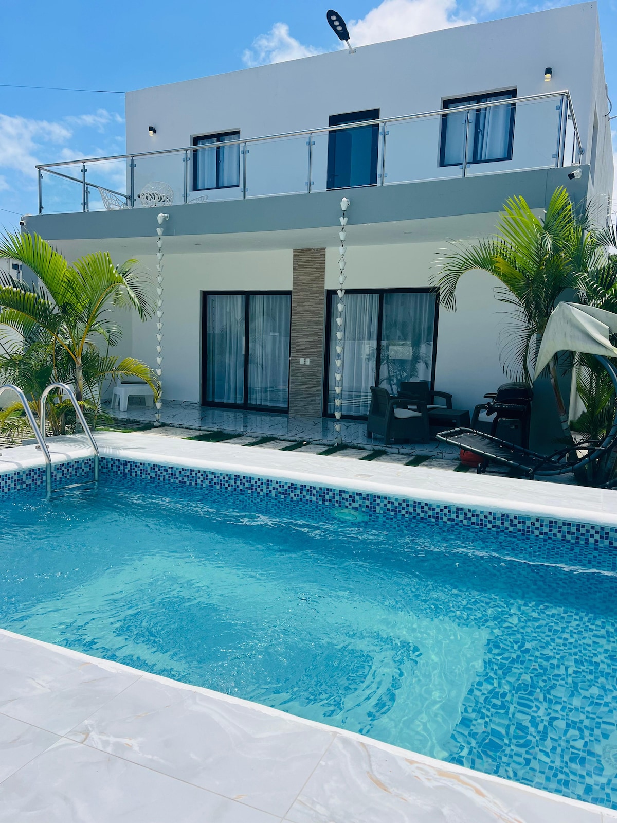 Located in the first line of the most popular beach of Las Terrenas, this villa will let you fully enjoy the view of Las Ballenas and the ocean. This modern structure is composed of 2 buildings separated by a nice swimming pool. With its 4 bedrooms, Villa Carrera accommodates up to 12 guests. The bedrooms all have a beautiful view of the beach. The living room is an open space that includes the dining room, the lounge area, and the kitchen.