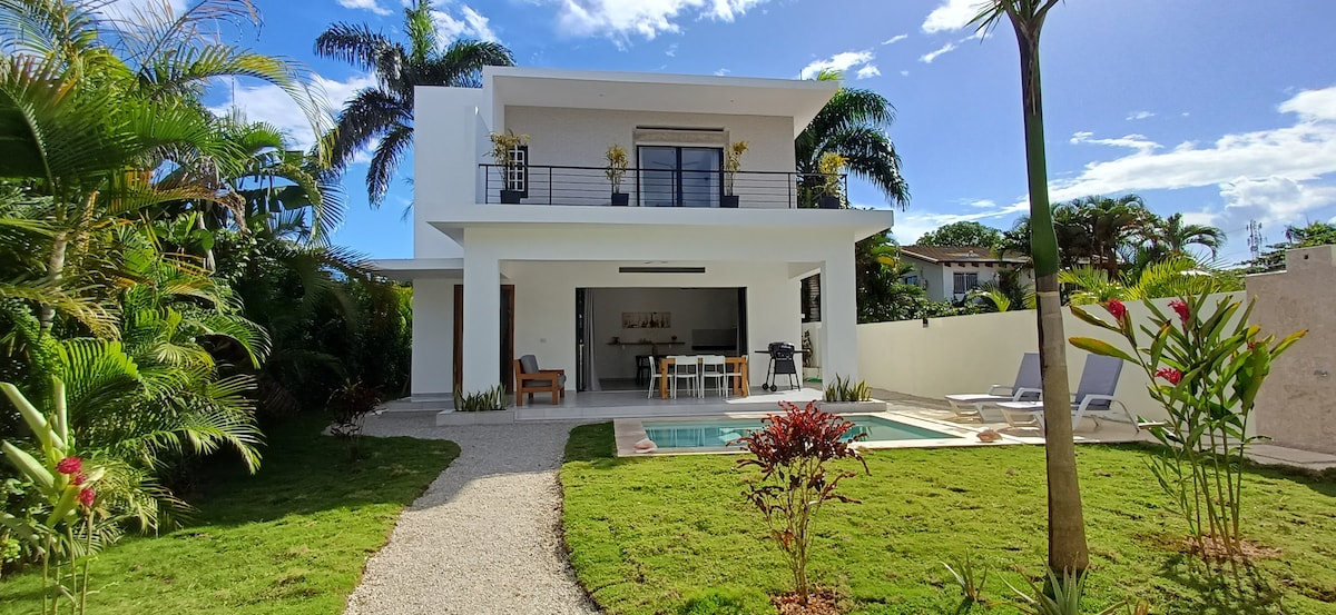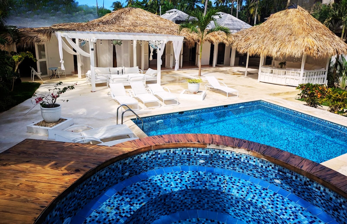 Magnificent modern villa in a secure residence with its own private garden and swimming pool with jacuzzi. Come and live a unique experience with your family or friends just 5 minutes from the most beautiful beach in the region. This villa offers you all the comforts of home with a personalized service only 10 minutes from the center of Las Terrenas, a magnificent typical Caribbean village. A unique place for an unforgettable vacation.