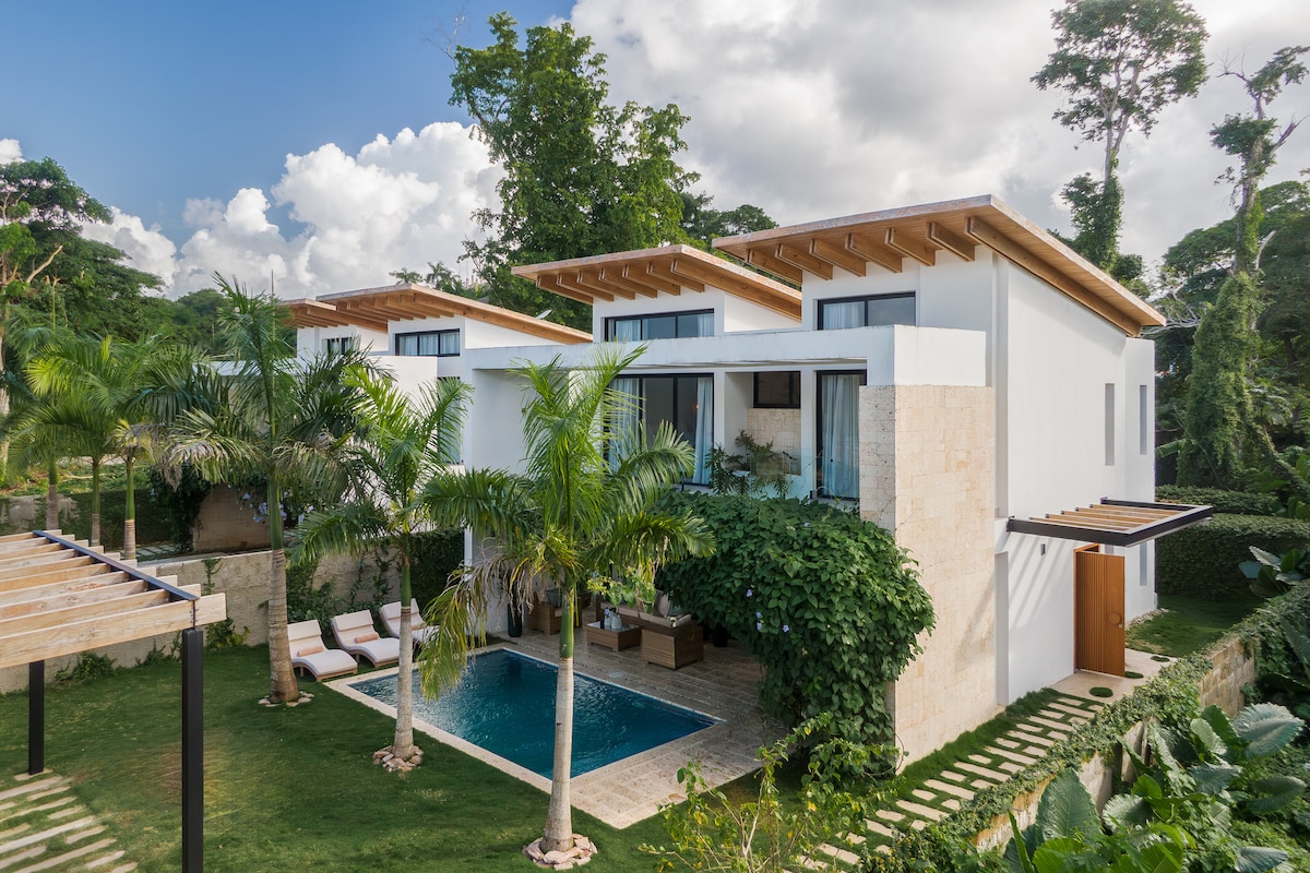 Casas Mauve es una comunidad de 3 casitas acogedoras con acceso independiente, cada una con su piscina privada y vista panorámica desde todas ellas. Inspiradas en el paisaje y el mar, su arquitectura de curvas suaves se integra con la naturaleza. A pocos metros del Mirador de Las Terrenas, de la playa Cosón y rodeada de vegetación tropical, ofrece amaneceres mágicos. A solo minutos del pueblo, con bares, restaurantes, tiendas y todos los servicios necesarios.