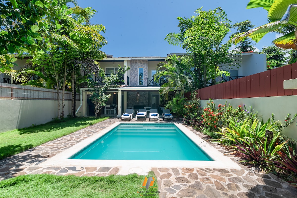 Casa en Residencial frente Playa Punta Popy. Completamente equipada. 2 habitaciones, ambas con cama Queen y aire acondicionado. 2 baños en suite. Salón con sofá cama, comedor. Cocina completa. Salón, comedor y cocina con abanicos. Área de barbacoa y comedor exterior. Área común con precioso jardín y amplia piscina. Lugar especialmente tranquilo y familiar. Parqueo limitado en el Residencial con vigilante nocturno. Prohibidas fiestas o eventos o música alta, No admitimos mascotas de ningún tipo.