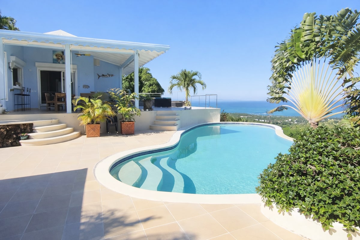 Sur les hauteurs de Las Terrenas, au milieu des loma , au cœur d’ une végétation luxuriante sous le hameau de Los puentes , vous bénéficiez d’une très belle vue sur la baie de Las Terrenas pour "farniente" autour de la piscine privé. Vous y bénéficiez de la fraîcheur de la loma et y vivez sans les moustiques. Depuis la maison à 400 m d altitude vous descendez au village de Las Terrenas et vers ses plages en 10 minutes La maison dépend d’un petit condominium de 6 maisons gardiennées 24h/24h...