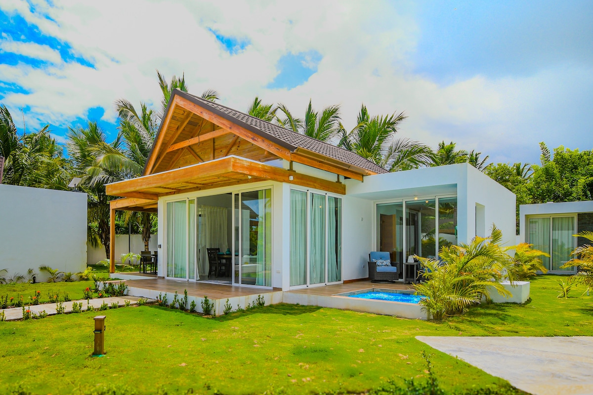 A nice quiet tucked-away spot, a 1 minute walk to the point you like to go see sunrise and sunset on. Some real Bali vibes here in the DR. Luxury modern villa for 8 persons. Private salt swimming pool, privet gazebo, work zone. The famous and excellent beach of Punta Pupi is 150 meters from us. Nice and cozy restaurants with local and international cuisine await you on the embankment.