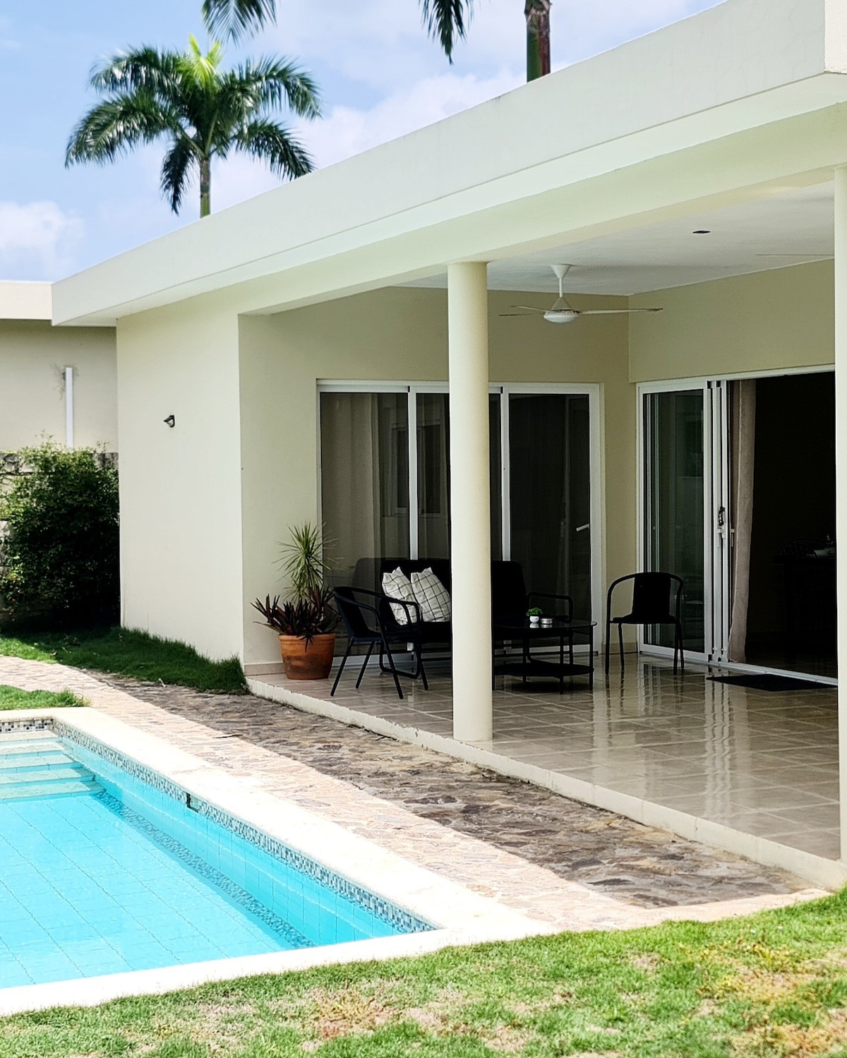 1-Bedroom Villa with Pool – 80m² – Las Terrenas, Dominican Republic – Sleeps 4 🏝️ Your vacation home in the heart of Las Terrenas Perfectly located in the village center yet peaceful, inside a secure residence with a large shared pool 🏊♂️, this fully equipped villa is just a 5-minute walk from stunning beaches 🏖️. 🛒 All shops nearby – bakery and supermarket only 200m away. Ideal for families, 👭 friends, or 💑 couples.