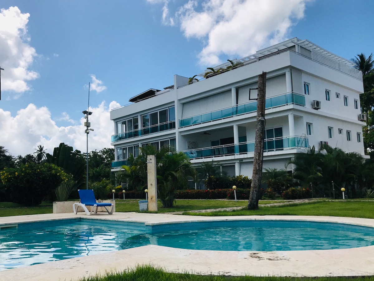 Moderno y lujoso apartamento, ubicado en el proyecto más prestigioso de las terrenas, playa bonita beach residences, condominio los cocos. El apto está a penas 5 minutos de la playa. Primer piso, 2 habitaciones. servicio al cliente 24/7 con Daniel duran. Internet fibra óptica. TV por cable, Smart TV, aire acondicionado, varias piscinas a su disposición, BBQ en la piscina, restaurante, cocina completamente equipada.