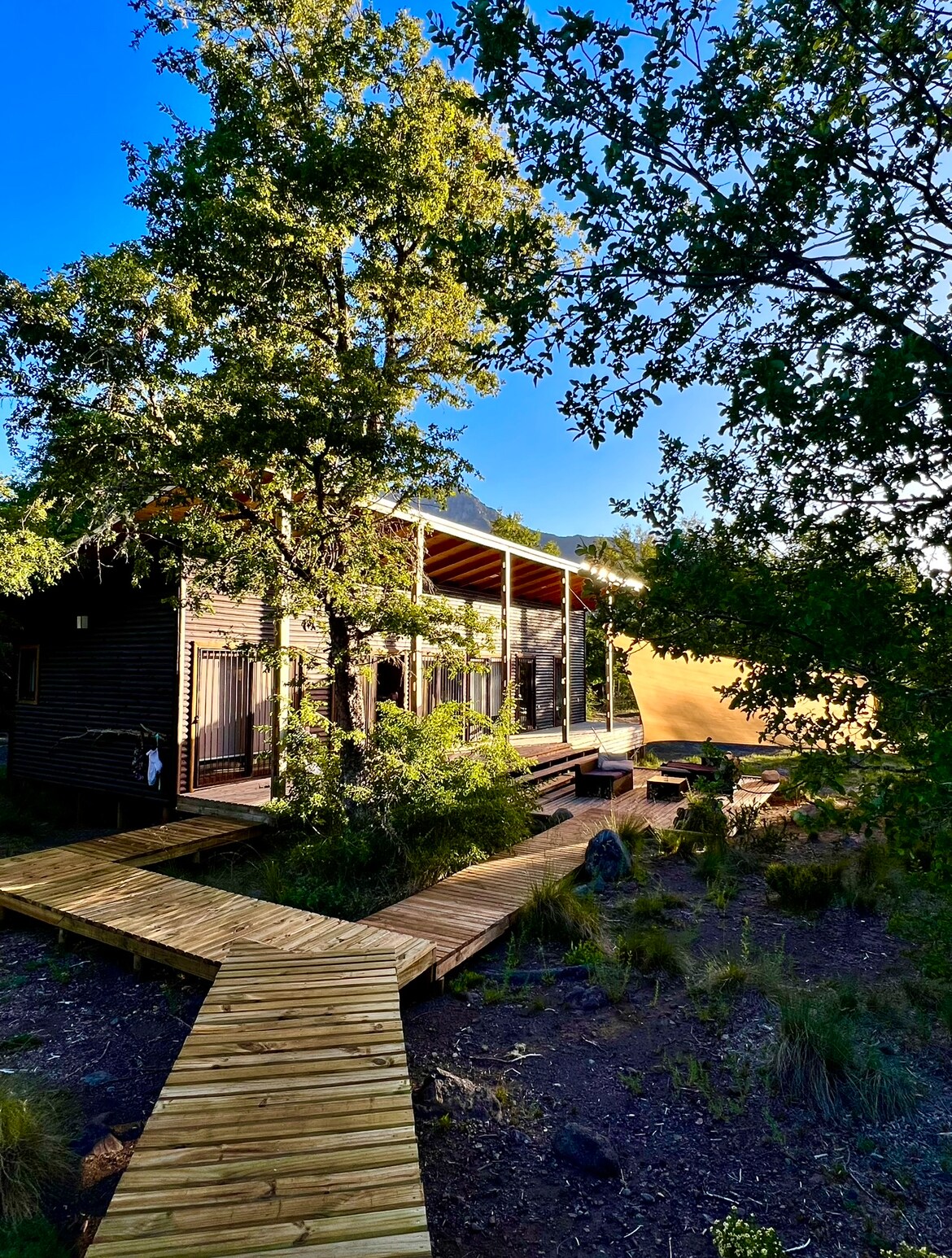 Alojamiento autosustenble en el Valle Las Trancas, operado con energía Solar y térmica. Ubicado en pleno corredor biológico Nevados de Chillán-Laguna Laja. Ubicado a 15-20 min de Nevados de Chillán. En sus alrededores se puede encontrar senderos para Trekking, ciclismo, cascadas y laguna huemul. En un paisaje de tranquilidad única, rodeada de flora y fauna nativa. Puedes disfrutar tus entrenamientos en nuestro Gym, y Por un valor adicional se puede disfrutar de un Hot Tub privado en la terraza.