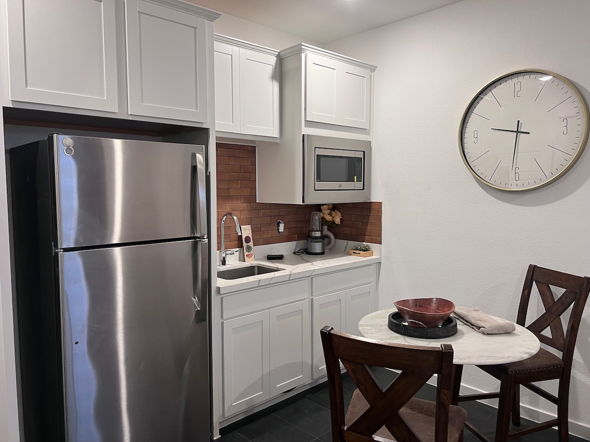 Welcome to our luxury guesthouse in a safe and quiet residential area of Las Vegas! Our open-concept studio is full of light and is perfect for one or two people. We have included luxury touches and all the comforts of home such as cotton and linen bedding, a genuine leather sofa and 60” TV, and quartz countertops. The private entrance and patio with twinkling lights provide a serene retreat at the end of the day.