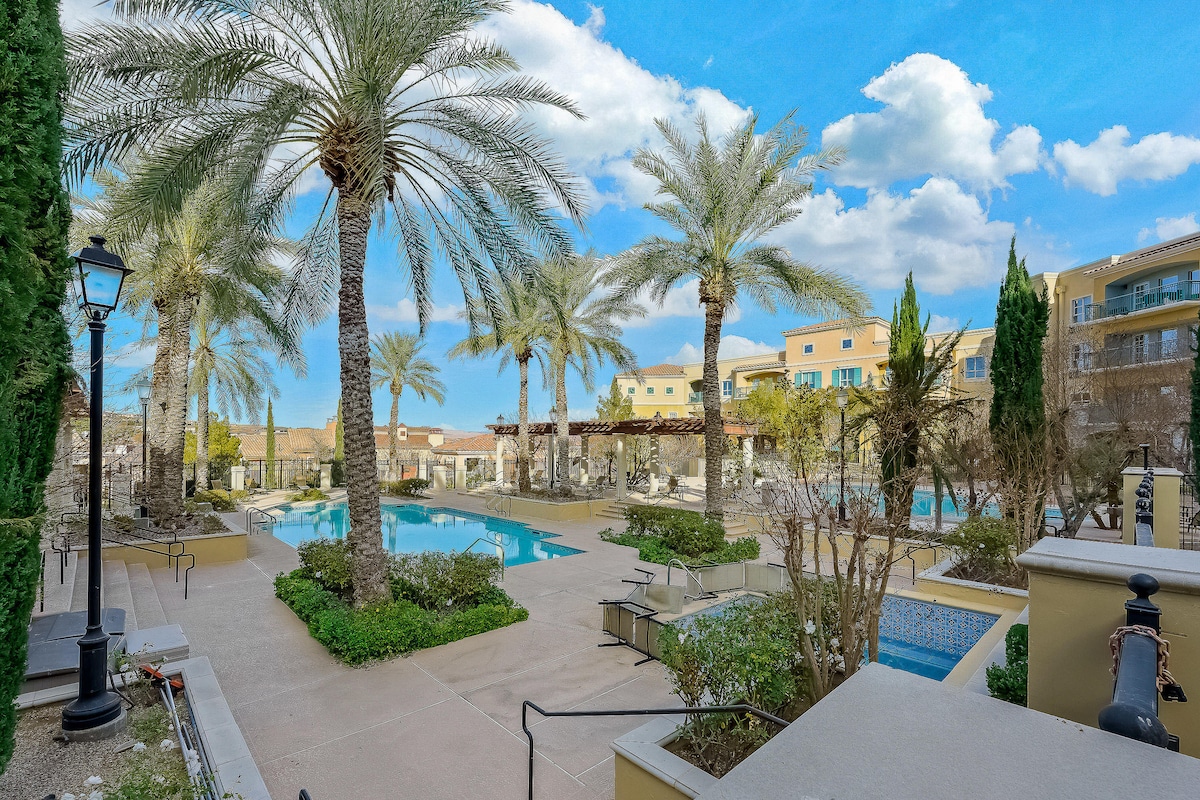 Escape the Hustle & Unwind in Style Discover your serene retreat just 20 min from Las Vegas in our remodeled luxury condo. Every detail has been crafted with deluxe materials & finishes, ensuring your utmost comfort. Relax on the deck while taking in breathtaking views of the lake, pool, & the vibrant village just steps away. Enjoy easy access to a variety of excellent restaurants and exciting activities, all within a short stroll. Registered nightly rental with City of Henderson (STR1900086)