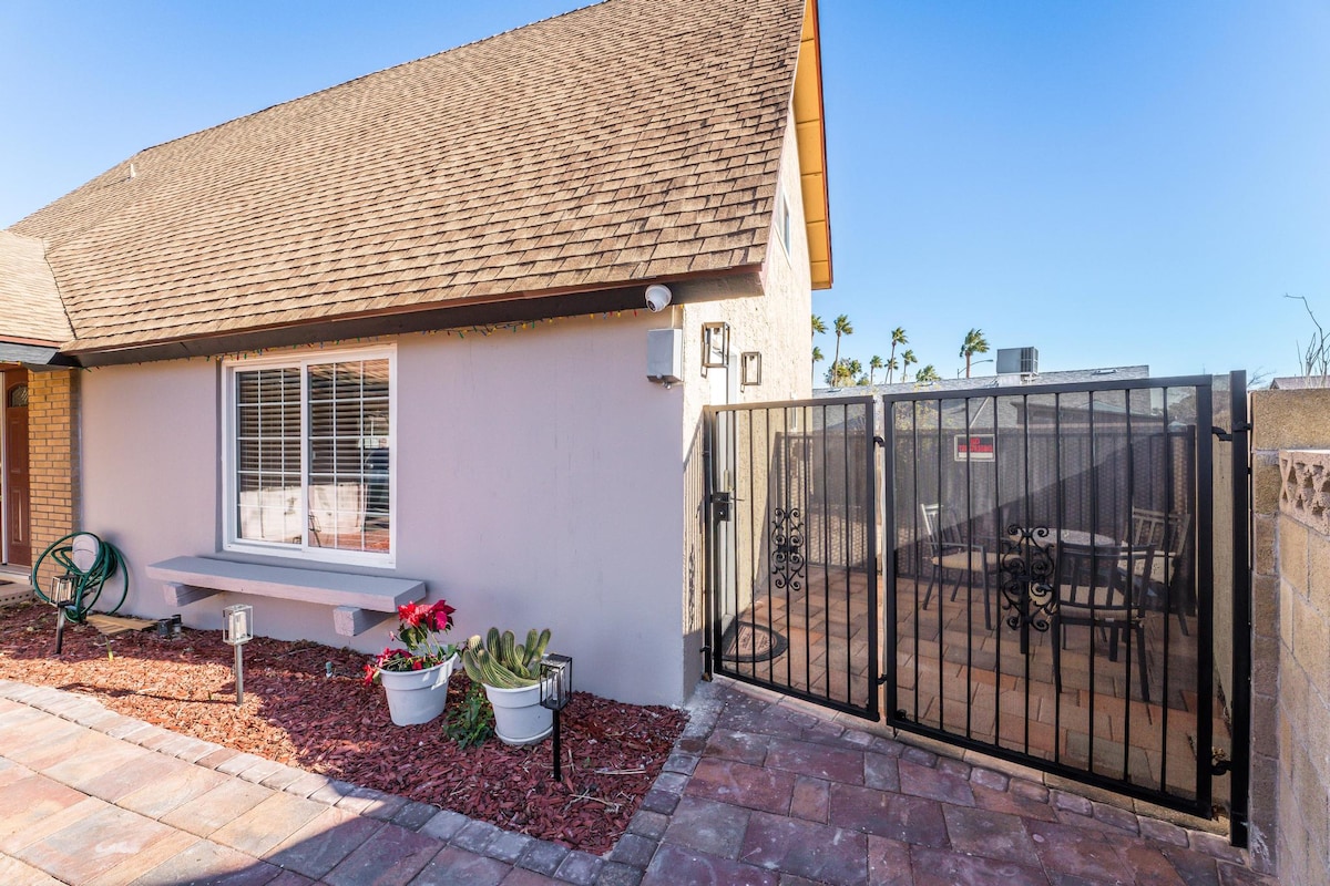 Welcome to this cozy studio in Las Vegas!!!! This studio is perfect to relax and rest during your vacation in the city. You will have your own A/C with cold and heat mode and a TV with Roku and Disney+ We are only 10 minutes away from Las Vegas Strip. You can get to the airport in 8 minutes. Rounded by shopping centers, markets, banks, etc... The studio has private entrance, kitchen and bathroom. Only the front yard is a common area where you can see other guests. Definitively you will love it