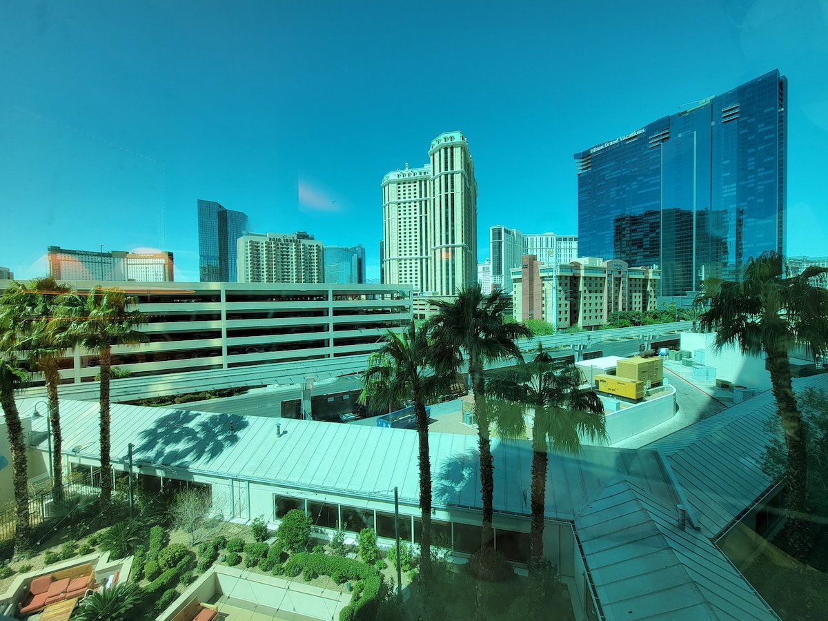 豪华单间公寓,可欣赏拉斯维加斯大道的景观,无度假村费,棕榈树成荫
