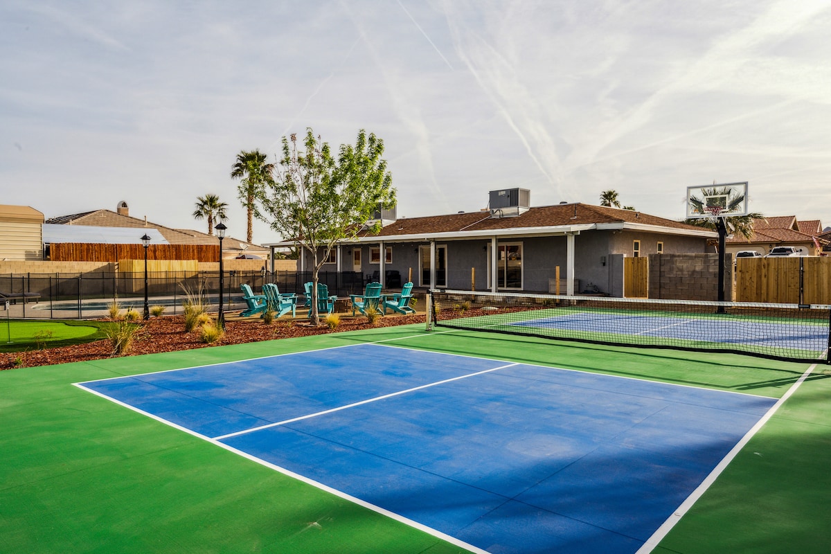 This gorgeous house will make you feel like being home while away from home. It has plenty of space to relax & have fun. Offers: Pool Table, Basketball 1/2 Court, Fire Pit, Putting Green, Darts, Home Theater, Ping-Pong, 36'' Blackstone Griddle BBQ, Giant Jenga, Giant Connect 4, Board Games, Fast WiFi, Cable TV, Coffee/Tea & more. Every bedroom has a desk w/chair for the Working-On-The-Go guests. Whether you're exploring Vegas or just enjoying a cozy weekend, you're sure to have fantastic time!
