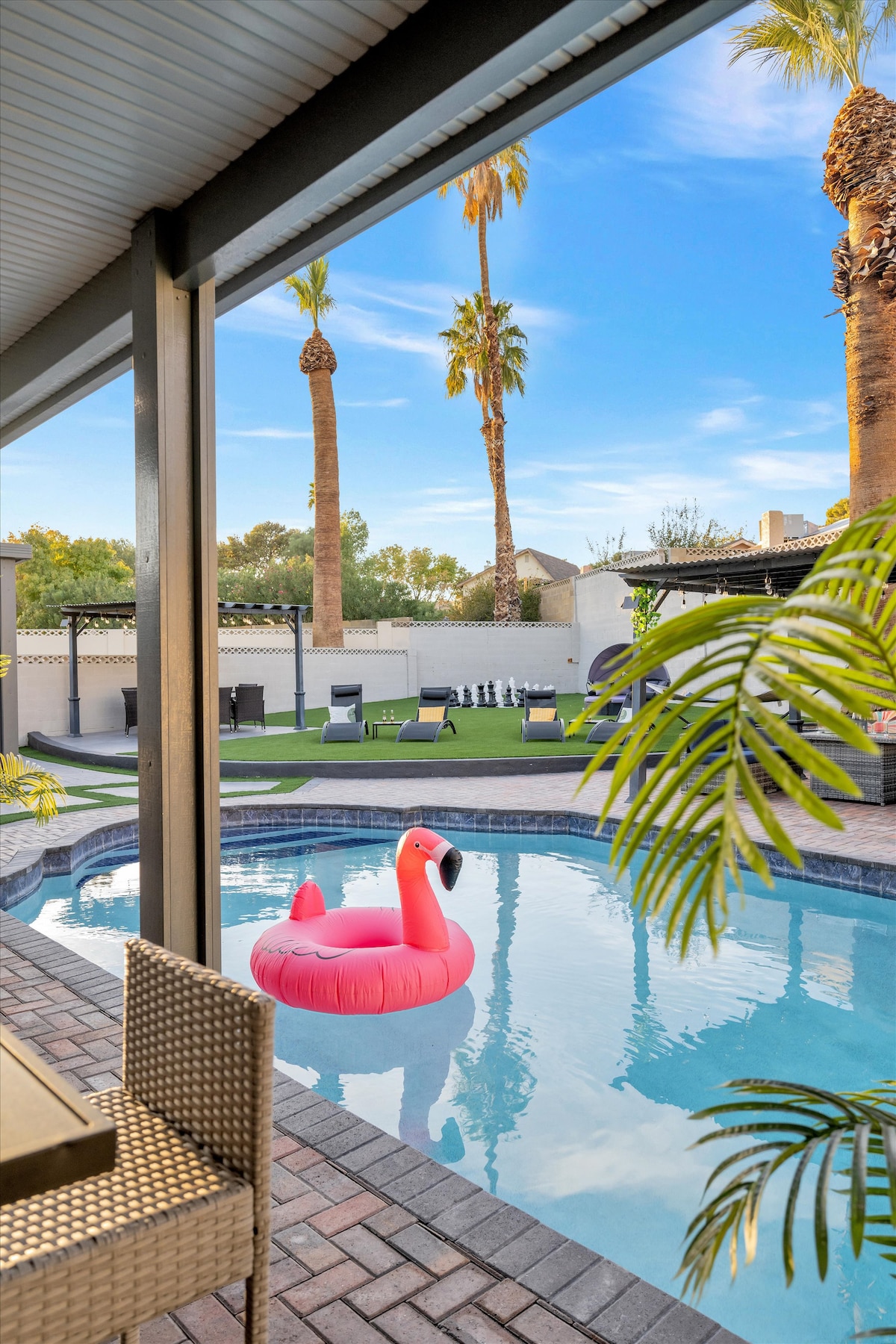 Luxury on a private Single Story Estate, Licensed, 1/2 acre lot w/ Pool&Spa, a perfect balance of location, space, serenity and amenities to create an ideal Vegas getaway. Home is 1 min drive to S. LV Blvd by the South Outlets, 3 mins to 🏈 Stadium, 5 min. to 🛫, 10 min. to Mandalay. Home is private but still has neighbors and it is VERY important guests are respectful. This is not a party house, its a family house and rules must be followed. No parties/events pls! Pls read house rules Thanks!