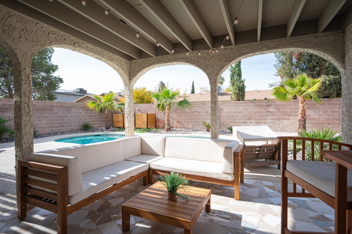 Kick back and relax in this calm, stylish space 10 minutes away from las vegas strip. The house has a large heated swimming pool with above ground hot tub , It is only 10 minutes from las vegas down town, a few blocks away from Spring Preserve travel and exhibition, 5 minutes from las vegas premium outlets and world market center. Ranch neighborhood style, Quiet and safe area. house is fully furnish with a large heated pool. The perfect place for a relax vacation experience in Las Vegas.
