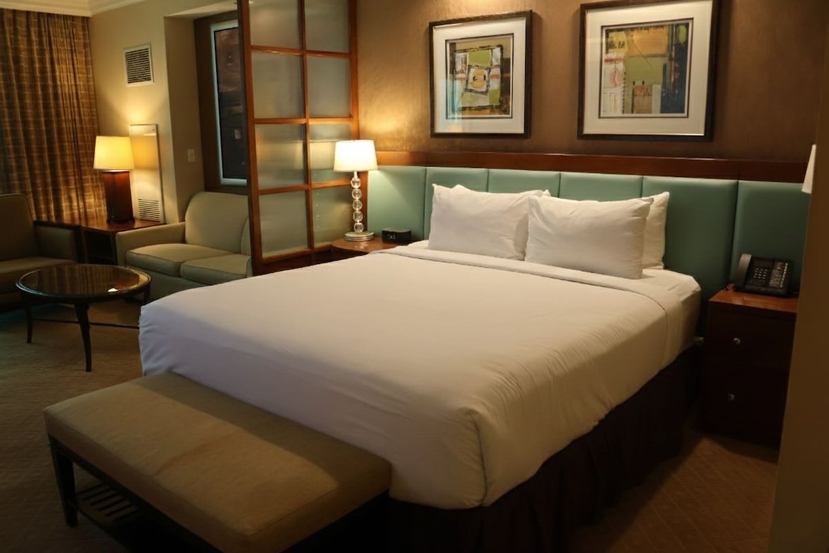 Experience unparalleled luxury at our distinguished 1-bedroom suite located within Palms Place, Las Vegas! Partake in the offerings of exclusive facilities such as a pristine pool, cutting-edge gym, and an array of premium hotel services. Retreat to your private oasis adorned with a sumptuous marble bathroom featuring a rejuvenating Jet-Tub. Savor panoramic views from your expansive balcony and unwind, knowing that we've meticulously crafted every aspect for a comfortable stay.