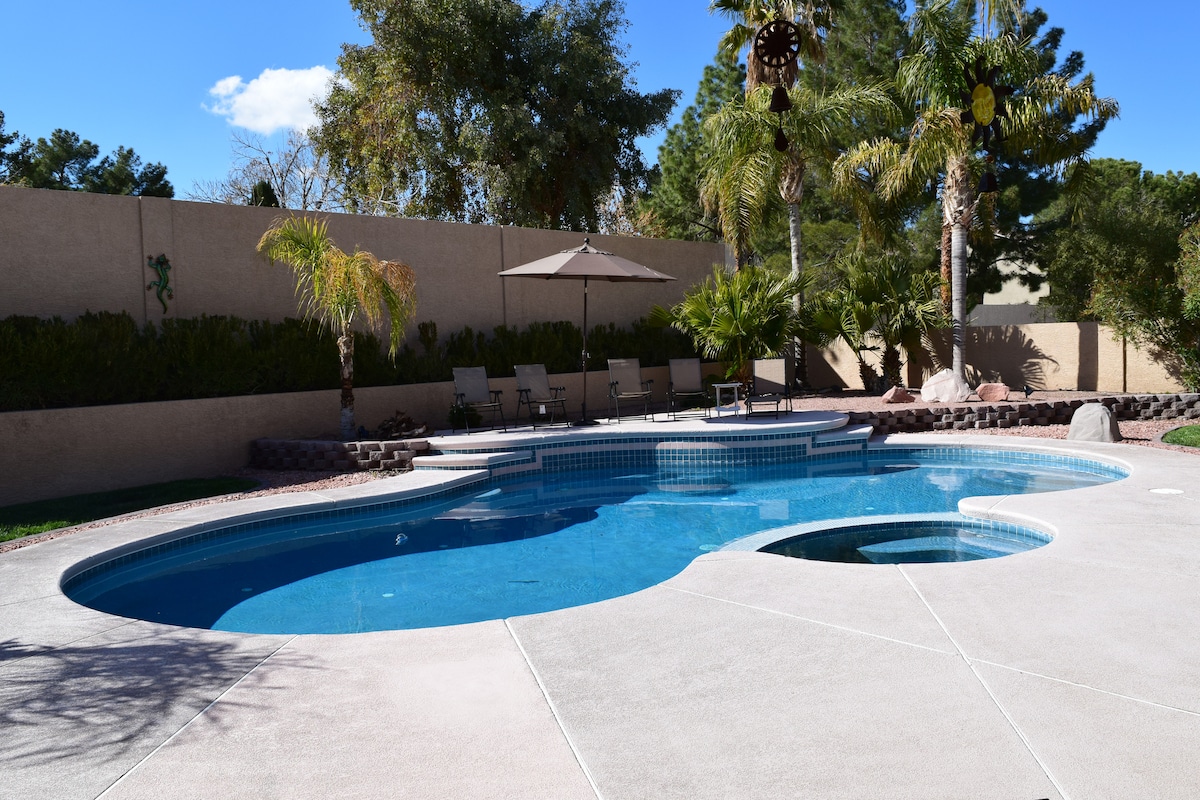 Freshly renovated Las Vegas home away from home with a resort pool oasis, custom fire pit gardens, new modern Clearwater jacuzzi with over 100 jets and water features for you to relax and enjoy, an outdoor kitchen BBQ patio area, and a fun outdoor game area! This single family home with a casita is located minutes from outdoor adventures, strip excitement, and beloved local attractions. Enjoy a relaxed modern Bohemian style with thoughtful touches to ensure a comfortable and memorable stay.