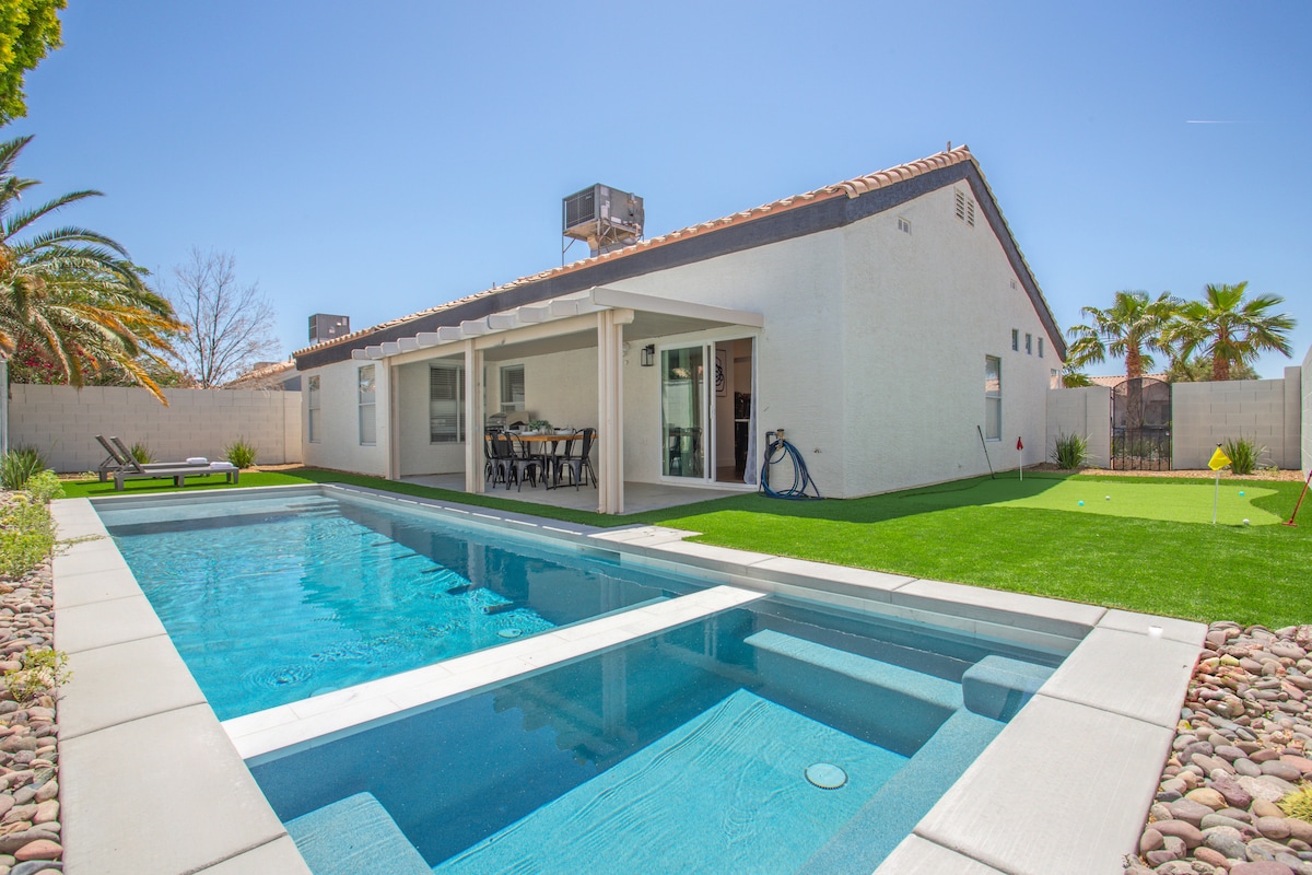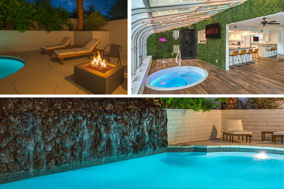 靠近赌城大道的豪华房源!热水浴缸/加热泳池/游戏室!