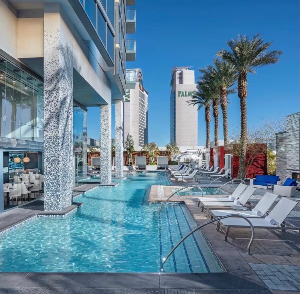 Welcome to Palms 34! Experience Vegas in style at this ultra-modern, one-of-a-kind 1BR suite with a massive wrap-around balcony and breathtaking views of the Las Vegas Strip. This upgraded suite features sleek, custom interiors, a fully equipped kitchen, a convenient coffee bar, and floor-to-ceiling windows that bring the energy of Vegas right to your doorstep. Enjoy FREE high-speed Wi-Fi, FREE parking, and direct access to the Palms Casino. Just a short walk to the Strip, nightlife and dining!