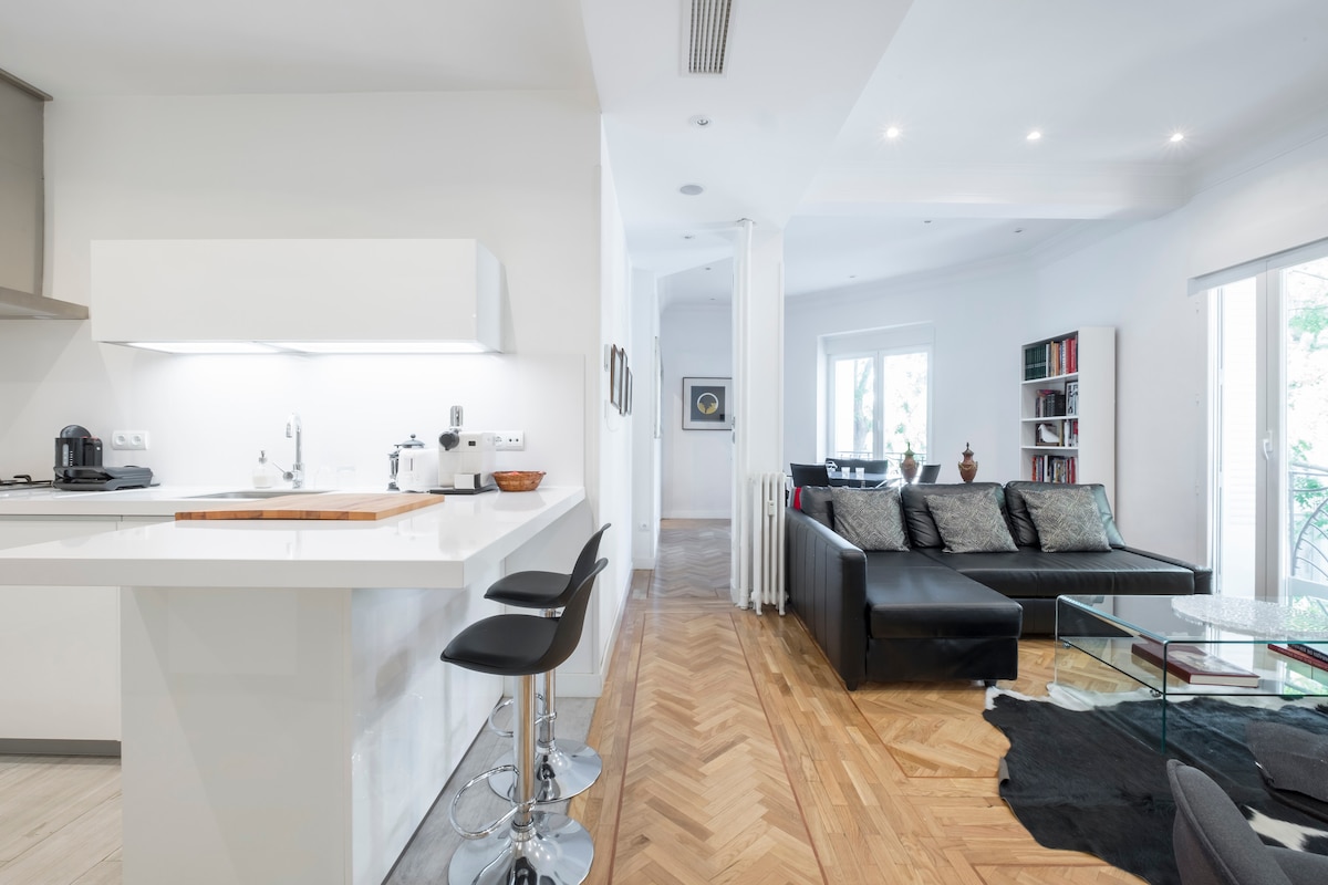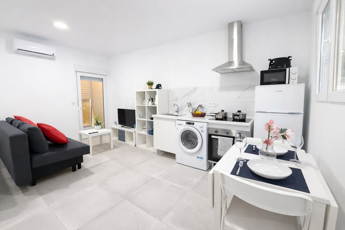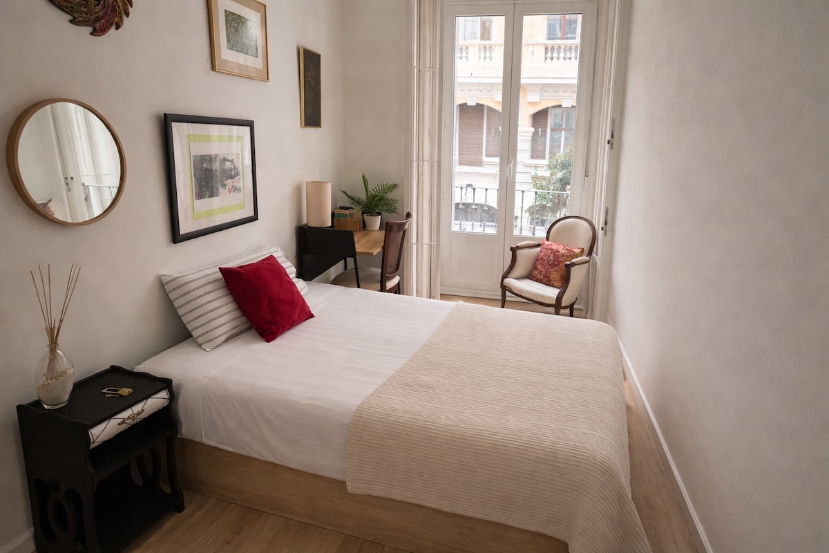 Enjoy the amazing location of this luxurious refurbished 1 bedroom, 1 sofa-bed flat (70m²) in the heart of Madrid, MALASAÑA! An area that offers a multitude of restaurants, leisure and culture, as well as easy and quick mobility throughout the city. The flat offers the highest quality, comfort and design for your stay. Everything is included: water heater, A/C, heating (heat accumulators), WIFI, sheets, towels and everything you need, whether for work or for fun!