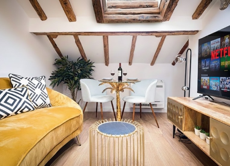 Disfruta de una experiencia de lujo en nuestro céntrico apartamento abuhardillado Las Juanas, es el más pequeño y coqueto de Casa Novicia. Con una inmejorable situación, disfrutarás de la maravillosa oferta cultural de Alcalá de Henares, de sus de comercios y restaurantes harán de tu experiencia en nuestro apartamento algo inolvidable. El diseño y decoración de Las Juanas harán de tu estancia una maravillosa experiencia.