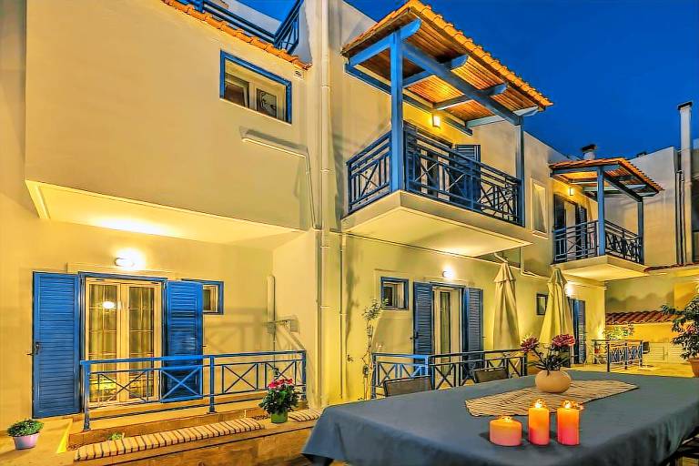 2-Floor Cottage with Majestic Bay View Serene and secluded cottage with garden BBQ, hammocks, treehouse, and a projector for home movies Ground floor: fireplace, couch, kitchen, and WC Upper floor: spacious bedroom, king-size bed, double couch/bed The private outdoor area is surrounded by cedars, almond, and olive trees, with a walkway leading to nearby villages, perfect for exploring Crete's land and sea views 5 minutes' walk to Voulisma Golden Beach, markets, cafés, and taverns and more...