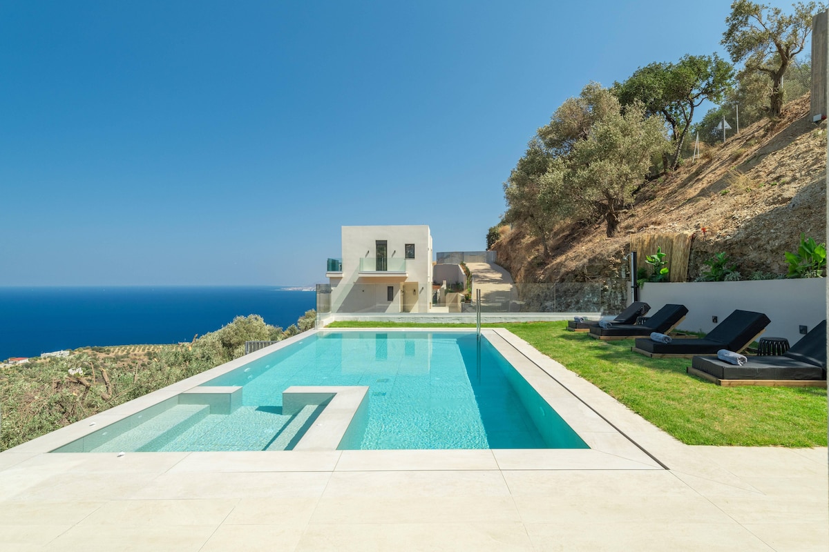 Απολαύστε γαλήνιες διακοπές στη θάλασσα! Ξυπνήστε το πρωί βλέποντας από το κρεβάτι σας μια μοναδική ανατολή ηλίου. Χαλαρώστε στο υπαίθριο τζακούζι, στην κοινόχρηστη πισίνα, τις βεράντες, ακούγοντας τον ήχο των κυμάτων και το κελάηδισμα των πουλιών. Η θέα παντού είναι εξαίσια. Μπροστά σας το απέραντο γαλάζιο του Κρητικού Πελάγους, γύρω σας η εντυπωσιακή κρητική φύση. Από τα δύο σαλόνια ως τις κρεβατοκάμαρες, την τραπεζαρία, την κουζίνα, τα μπάνια, το υπαίθριο ντους, η θέα είναι συναρπαστική.