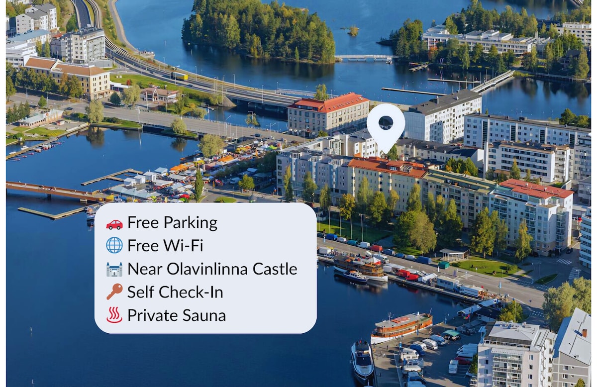带桑拿的宽敞一卧室公寓 靠近奥拉文林纳城堡( Olavinlinna Castle