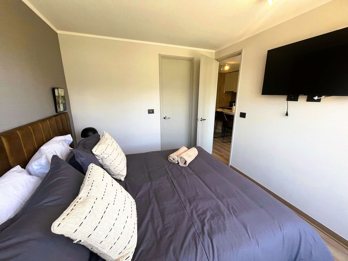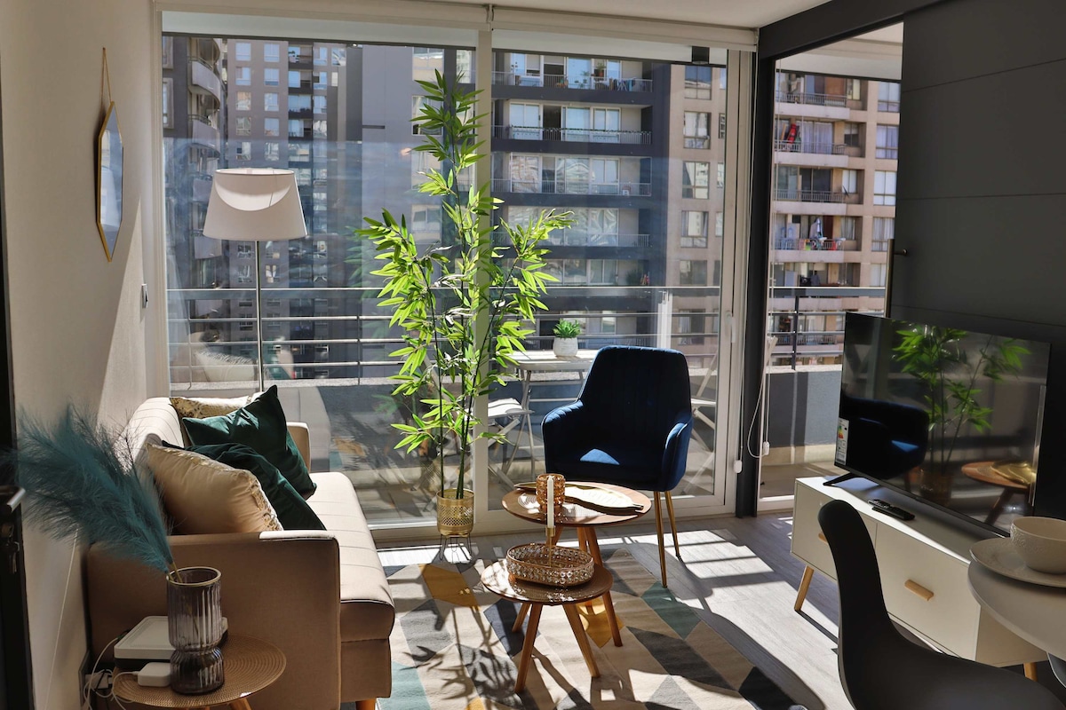 Acogedor estudio en Ñuñoa, ideal para dos personas. Cuenta con cocina totalmente equipada, perfecta para preparar tus comidas, y un balcón privado para relajarte al aire libre. Su excelente ubicación te permitirá disfrutar de restaurantes, cafés, supermercados y transporte cercano, con fácil acceso a los principales puntos de Santiago. Una opción cómoda y práctica para tu estadía.