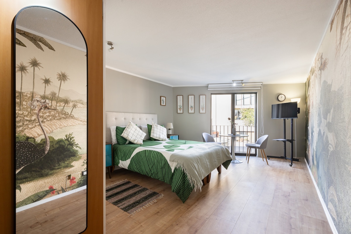 Disfruta la calma de la ciudad en un espacio moderno, luminoso y lleno de detalles pensados para sentirte en casa. Este departamento combina confort, diseño y funcionalidad en un ambiente cálido y relajante. Ubicado a pasos del metro Salvador, estarás cerca de parques, cafés y restaurantes, pero lo suficientemente apartado para descansar en un entorno verde y tranquilo. Perfecto para estadías cortas o largas, es el equilibrio ideal entre vida urbana y sensación de hogar.