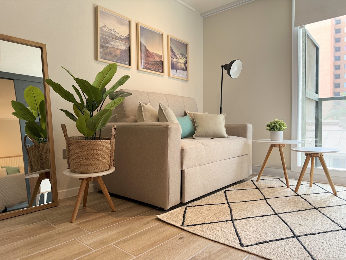 This apartment is ideal for relaxing and enjoying the city. It's centrally located, between the Santiago Centro and Providencia districts, one of the best locations in the city. It offers beautiful views of San Cristóbal Hill and the Sky Costanera. It's just a 3-minute walk from the metro and buses. Includes: Free Wi-Fi, a fully equipped kitchen, sheets and towels included, a large bed with a large Smart TV. Self-service entrance with a key, allowing you to arrive at any time.
