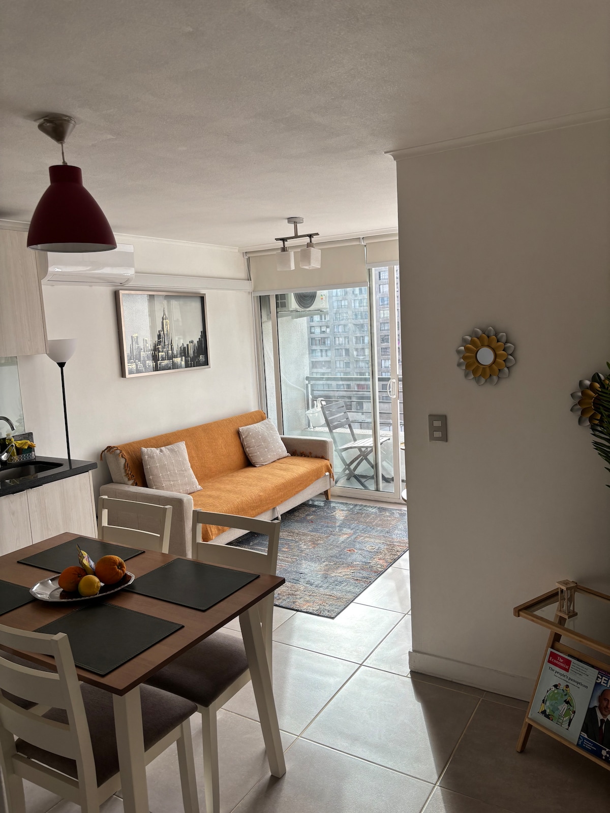 This apartment is ideal for relaxing and enjoying the city. It's centrally located, between the Santiago Centro and Providencia districts, one of the best locations in the city. It offers beautiful views of San Cristóbal Hill and the Sky Costanera. It's just a 3-minute walk from the metro and buses. Includes: Free Wi-Fi, a fully equipped kitchen, sheets and towels included, a large bed with a large Smart TV. Self-service entrance with a key, allowing you to arrive at any time.