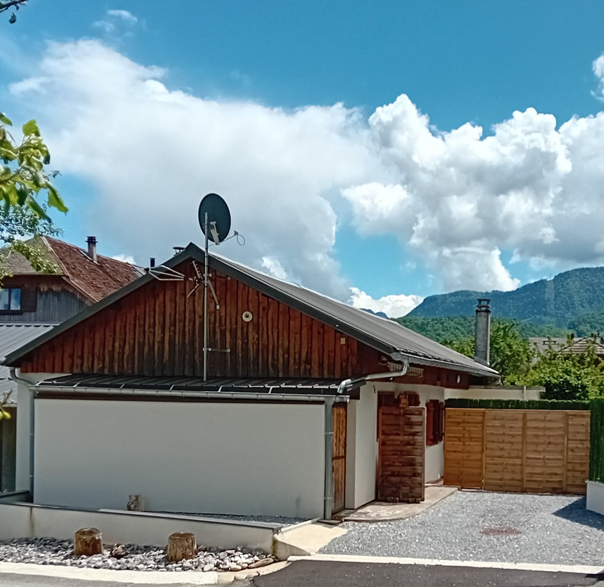 Idéalement situé au bout du lac d’Annecy entre la montagne du Taillefer et le lac au cœur du parc régional du massif des bauges . Classé meuble tourisme 3 étoiles 🌟 Chalet indépendant contemporain situé dans la commune de LATHUILE dans le hameau de Chaparon . Chalet neuf avec toit plat végétalisé. Notre maison est mitoyenne mais les deux espaces sont parfaitement séparés